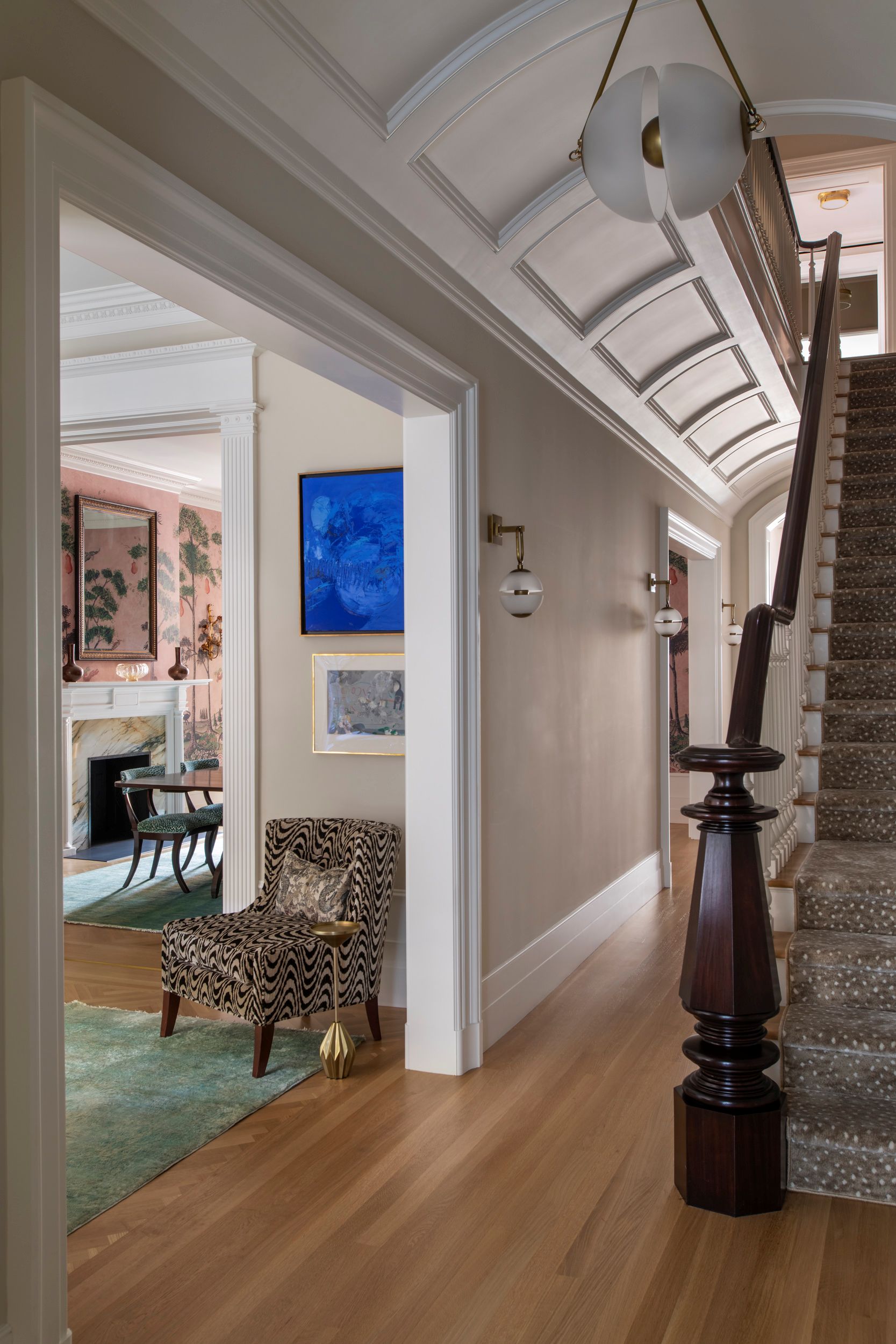 The restoration of the unusual barrel-vaulted ceiling in the front hall was carefully considered. “A version of that ceiling was there,” Ingui said. “I don’t know if was original to the house, but we wanted to keep it. We made it more complete, sculpting until we got it right.”