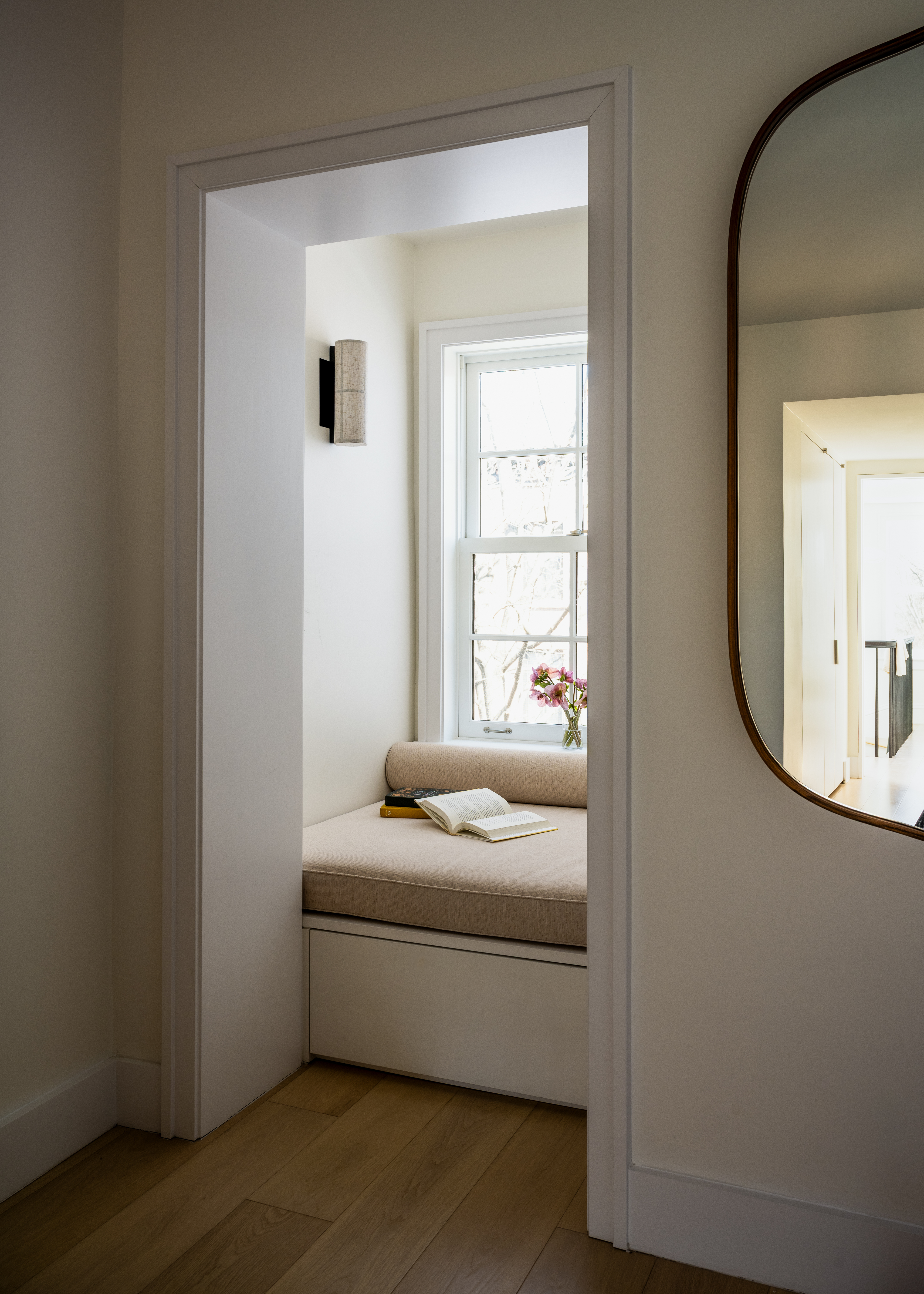 There’s hidden storage under fitted window seats in the square bay windows, one in the primary bedroom, another in the the daughter’s room below.