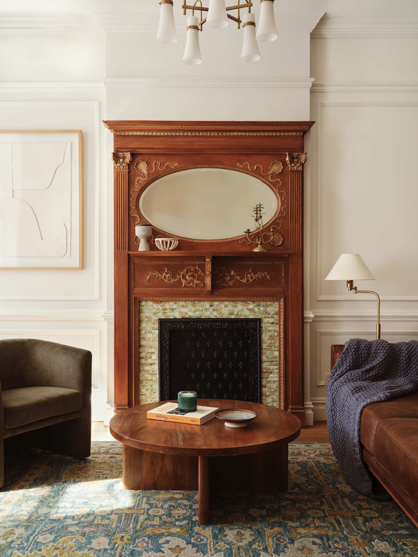 There was an existing wood mantelpiece around a non-working fireplace in the front parlor, which Glam Studio kept. “We’re not sure if it’s original, but it’s a great focal point,” Ament said.