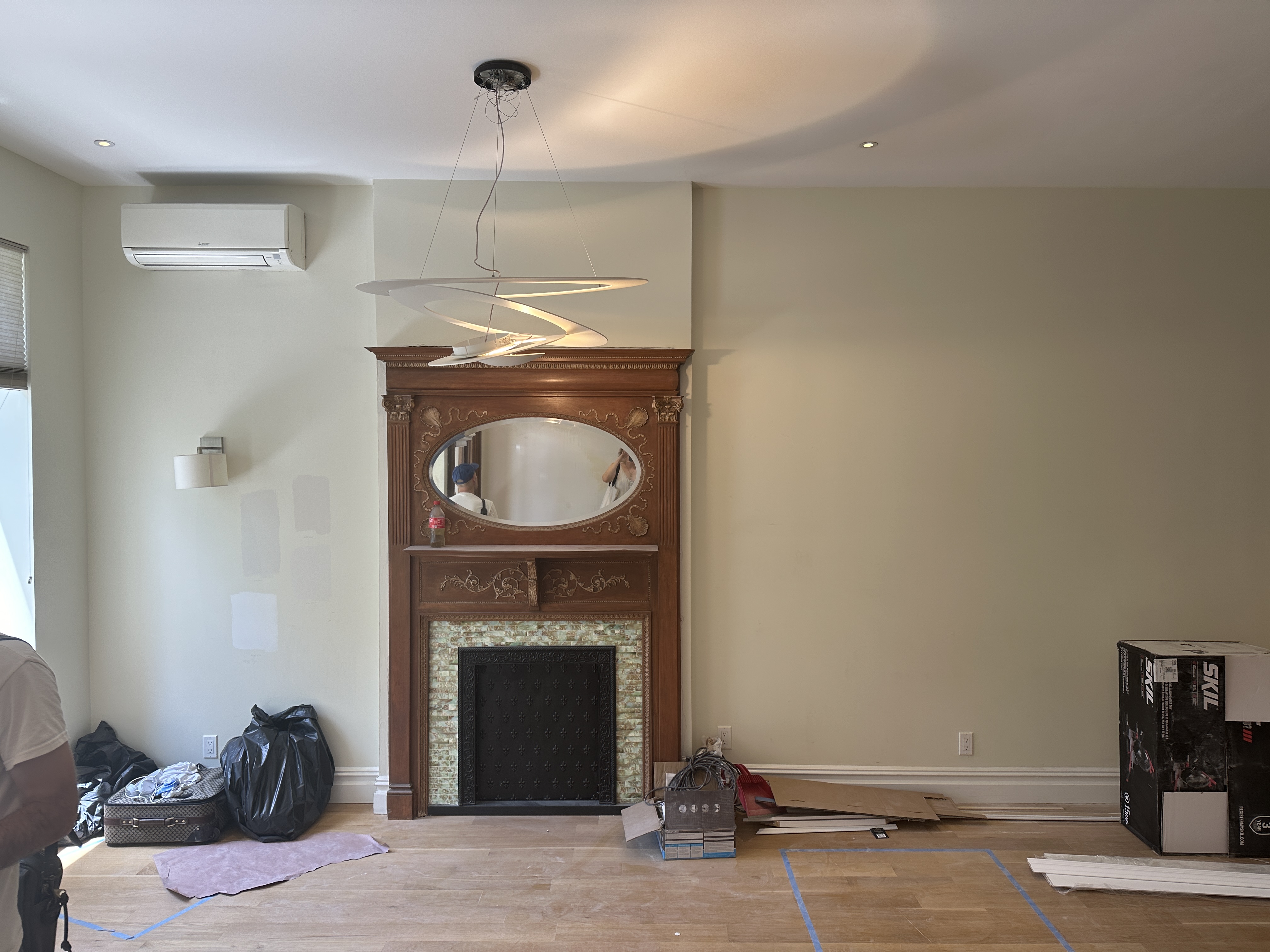 There’s a split unit above and to the left of the fireplace in the before photo. I dont see it in the after photos. Any information on what they did there?