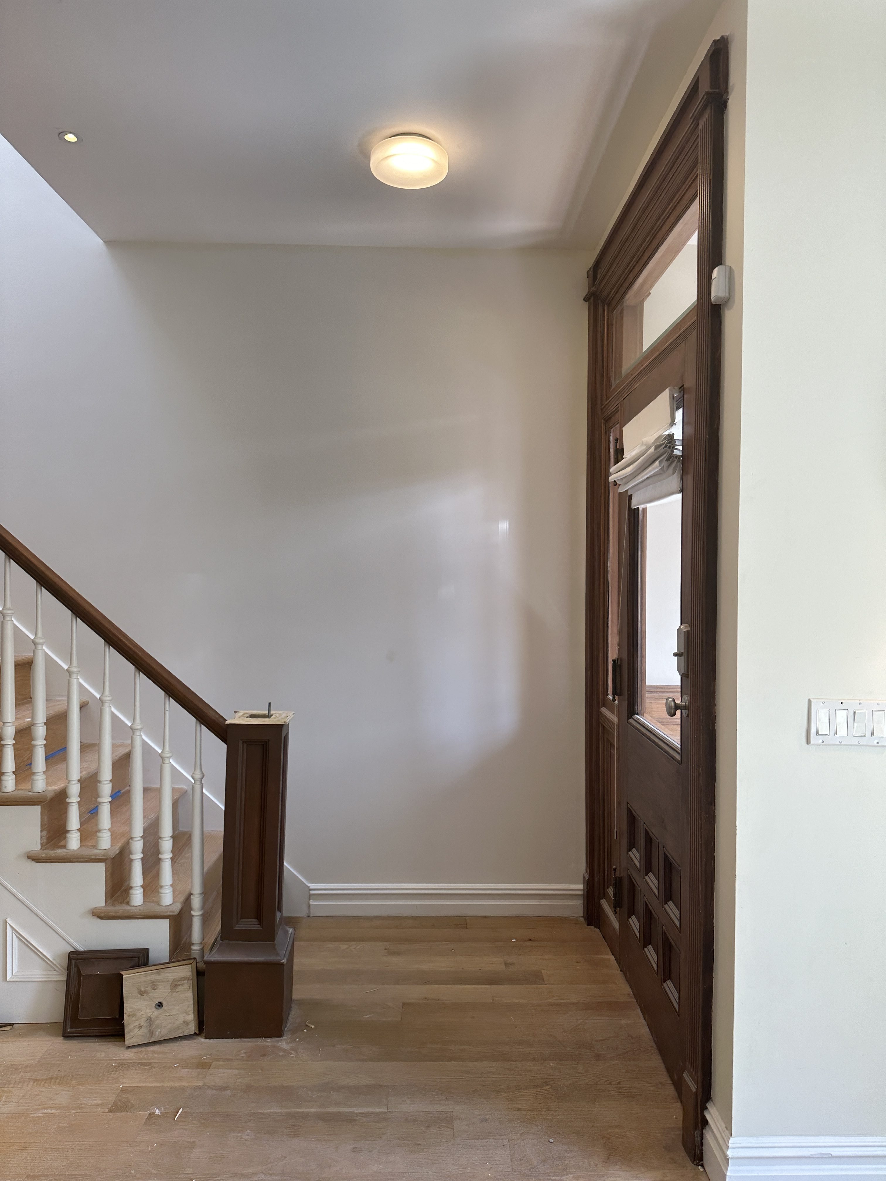 But the work wasn’t all decorative. Glam Studio also had to deal with water damage on the garden level, figure out workarounds for several columns inserted by the developer on the parlor floor in lieu of structural beams, finesse spots where soffits interfered with the placement of crown moldings, and enlarge the primary bedroom by demolishing a closet and shifting a wall.