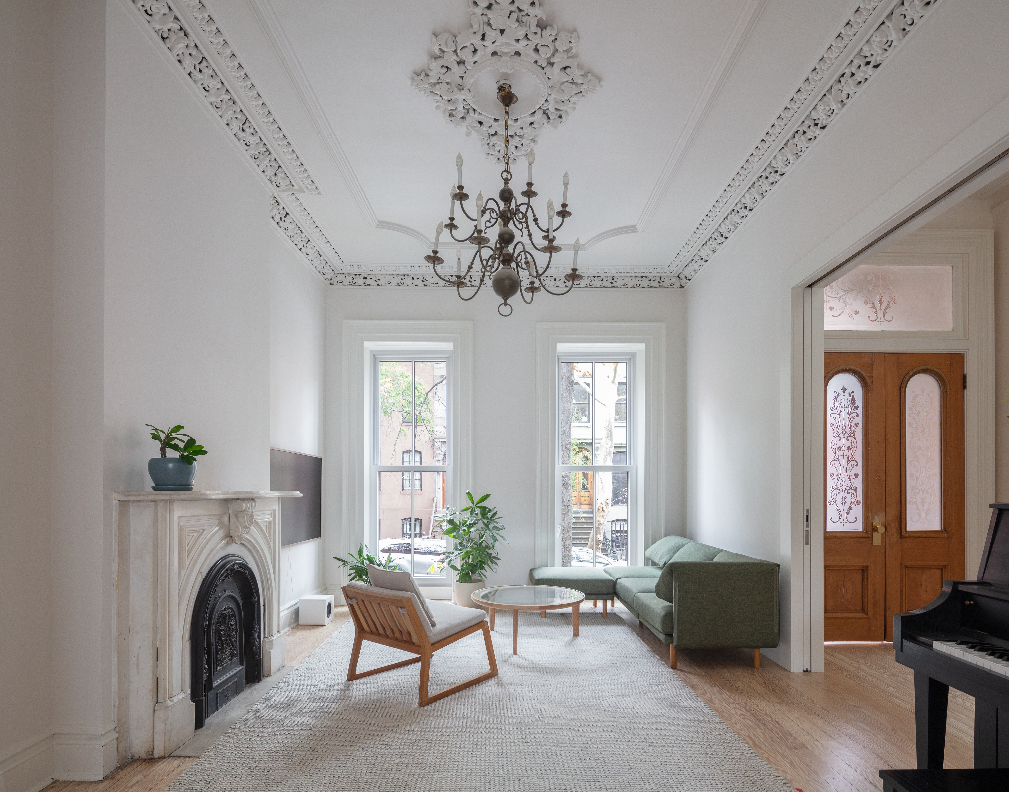 A renovation of a Boerum Hill house by architect Ruth Mandl insulated the roof and concealed new mechanicals without disturbing fine plasterwork, which was restored as part of the project. Photo by Naho Kubota