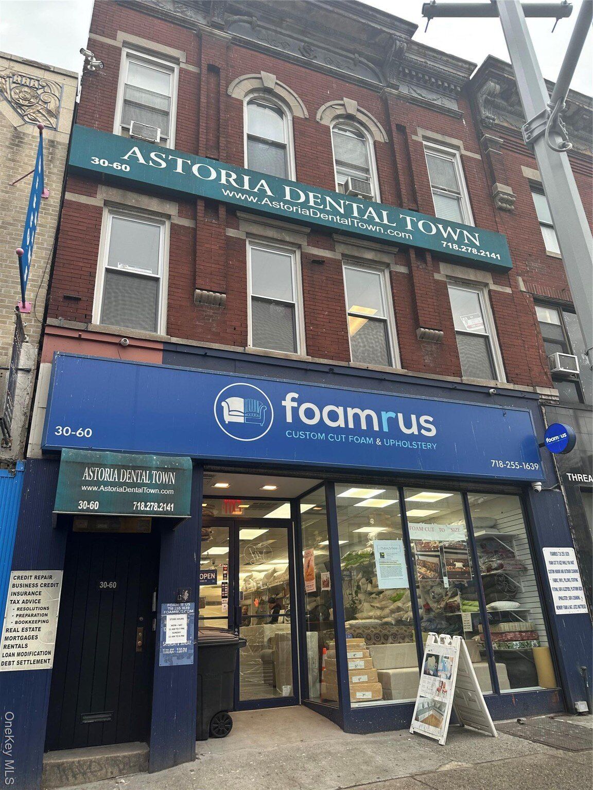 Prime center block location on a cross walk on high traffic block off 30th avenue. Best retail block on Steinway Street across from ATT mobile company store many large national retailers in area. Walking distance to subway N, W, M, R lines MTA buses. Rare investment property of this type now available. 3 story all brick building updated. Three story building consisting of two 2-bedroom apartments with 2 bathroom each. two professional offices on second floor and large first floor storefront being used as a furniture store. Full high ceiling basement with updated electrical service. Property has video intercom system. Close to all grand central parkway and Brooklyn Queens Expressway LaGuardia airport. Zoned R5. all short term lease with huge upside potential All lease short term with lots of upside potential, Second floor office vacant.