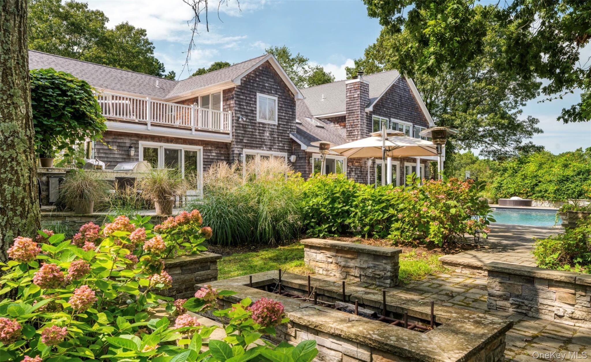 Quogue Village Ultimate Retreat Enjoy resort-style living at its finest in this exceptional Quogue Village residence, nestled on 2.02 +/- acres bordering a 6.5 acre reserve. Thoughtfully crafted with both luxury and leisure in mind, this 7 bedroom, 9 full bath, 4705 sf +/- home offers an unmatched array of amenities. The main level features a spacious foyer, leading to a light filled cathedral ceiling living room with fireplace, an expansive dining room seating 12 or more, Open kitchen with breakfast eat-in area , and a Great room with a wet bar, all looking out through Glass doorways to the luxurious yard. Completing the main floor there are two en-suite bedrooms and an additional full bath. The second floor offers an oversized primary en-suite bedroom with marble double vanity bathroom, walk in closet, sitting area and a private balcony. Also included are 4 guest en-suite bedrooms one with a private balcony and two that share balcony.The finished lower level presents flexible space, ideal for a gym or media room. Outdoor living shines with generous seating surrounding the heated pool, spa, and fully equipped outdoor kitchen-ideal for al fresco dining and outdoor gatherings. Har-Tru tennis, pickleball, basketball, and beach volleyball courts provide endless recreation, while a firepit, barbeque, vegetable garden, outdoor shower and therapeutic ice bath evoke the feel of a relaxing retreat. Located minutes away from Quogue Village beaches and local shops, this residence redefines Hamptons luxury. Blending refined design with premier amenities, it offers an entertainers dream and a resort-like experience year-round.