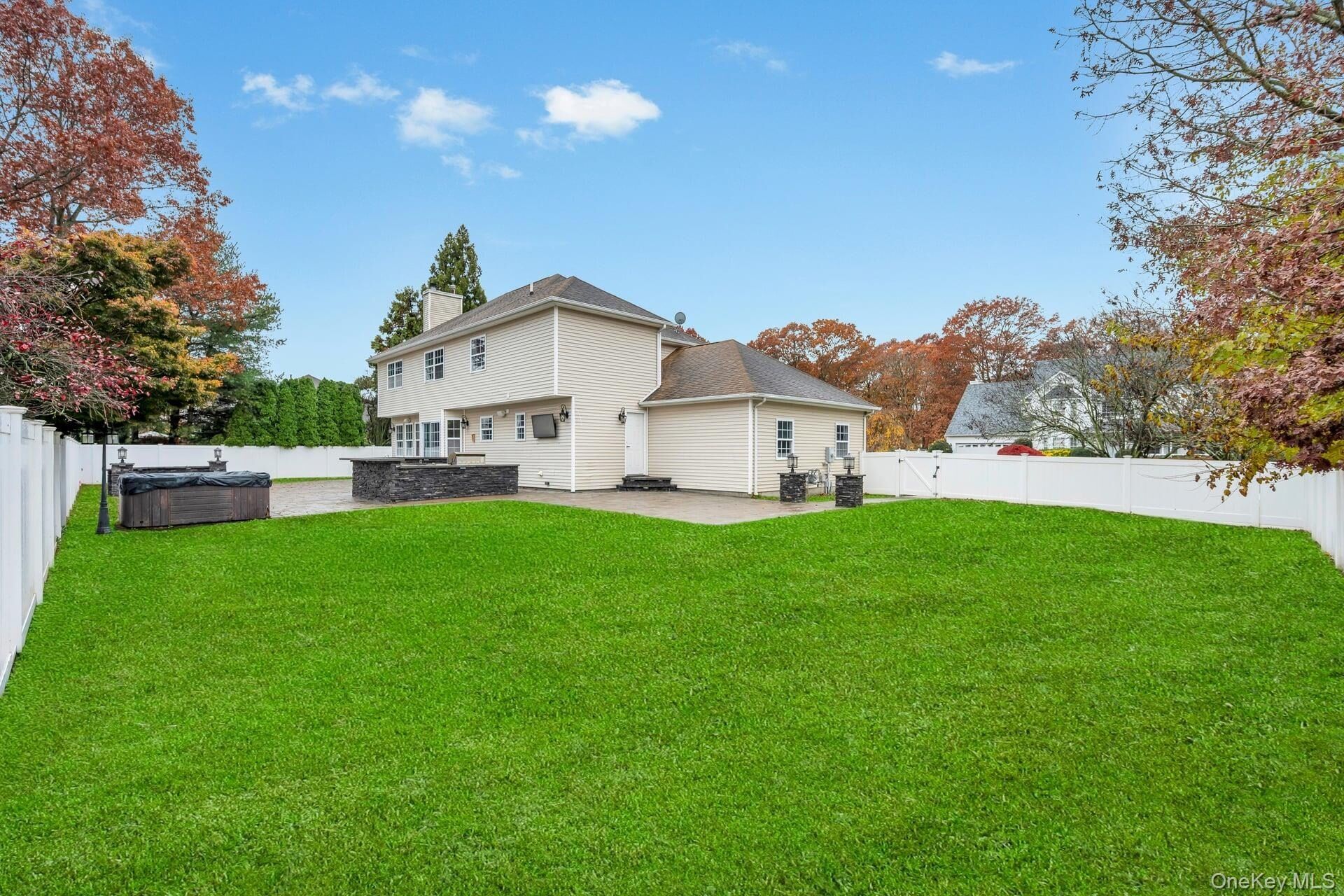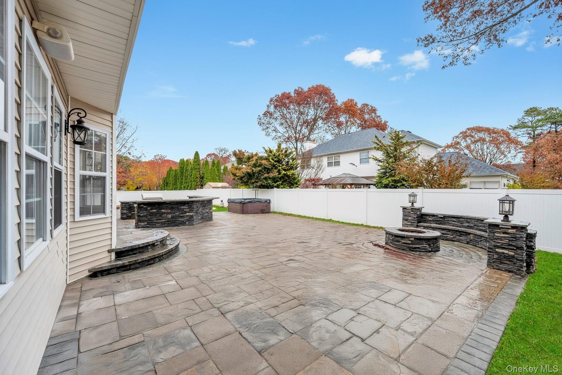 Perfectly positioned mid-block on a beautiful street, this newer-built home combines high-end finishes, craftsmanship, and comfort from the moment you arrive. The exterior makes an immediate impression with a full paving stone driveway and walkway leading to the front entrance, flanked by two cultured-stone pillar lights and a striking partial cultured-stone front facade. Step through the grand two-story entry and be greeted by a dazzling crystal chandelier, 8-foot ceilings, and brand-new hardwood floors throughout. To your right, the formal living room is filled with natural light and finished with elegant custom molding. The open flow continues into the warm family room featuring a custom wood-burning fireplace with detailed box molding and granite tile surround. The chef's kitchen is a showstopper with rich walnut cabinetry, quartz countertops, a white ceramic tile backsplash, an abundance of counter and cabinet space, brand-new LG stainless steel appliances, and a gas stove. The kitchen opens seamlessly into a formal dining room perfect for hosting. The first floor also offers a new designer powder room, pantry, and a mudroom with washer/dryer hookups and cabinetry. Upstairs, all bedrooms are generously sized, including an enormous primary suite featuring recessed lighting, hardwood floors, and an incredible custom California closet system with shelves, drawers, and endless hanging space. The spa-like primary bath offers an oversized glass-enclosed rainfall shower, a stone hexagon shower floor, porcelain floor-to-ceiling tile, a double quartz vanity with a gray base, and an oversized framed mirror. The fully renovated hallway bath includes a tub with glass shower, octagon tile flooring, and a white vanity with quartz countertop. Every door throughout the home is brand-new six-panel style, and the entire interior has been freshly painted. The full finished basement provides additional living space with high ceilings, baseboard heat, herringbone-pattern porcelain tile flooring, new basement windows, and a brand-new hot water heater. The gas burner has also been updated. Outside, the resort-style backyard is built for entertaining with a massive paver patio, fire pit with built-in bench seating, two cultured-stone lighted pillars, and an outdoor kitchen featuring dual-level bluestone counters, a stainless steel sink, wine fridge, barbecue, and two additional propane burners-all surrounded by white PVC fencing for total privacy. This home delivers unmatched attention to detail, elegant finishes throughout, and a layout perfect for both everyday living and unforgettable entertaining. As is.