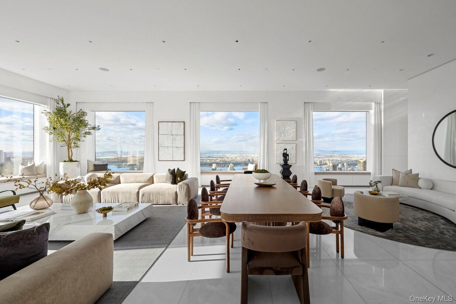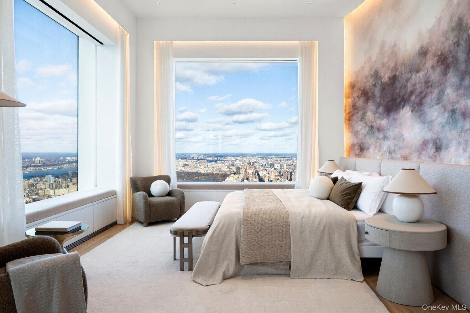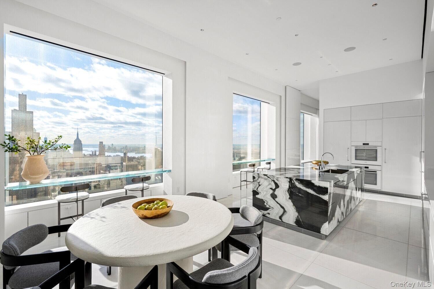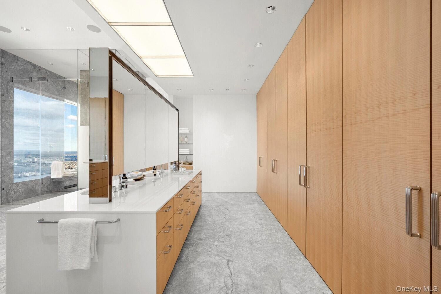 Perched high above Manhattan, Residence 78AB at 432 Park Avenue offers a rare chance to own an entire floor within one of the world's most iconic residential towers. Encompassing 8,280 ft2, this offering includes the fully renovated B-line residence (7,045 ft2) and the adjacent unfinished A-line space (1,235 ft2). The A unit can be seamlessly combined or maintained as a separate guest apartment or resale opportunity with its own private elevator access and tax lot. Soaring ceilings of 12.5" are finished in sheet rock (with an additional 2.5" before the slab) and unmatched 10" x 10" windows frame panoramic exposures to the north, south, east, and west. Natural light pours in by day; by night, the skyline comes alive in every direction. With abundant wall space for grand art and a flexible layout, this home is both a showcase and a sanctuary. Upon private elevator entry, a Panda marble vestibule leads to a dramatic gallery and an expansive corner living and dining room with sweeping views of the Manhattan skyline and magical sunsets over the Hudson River. Entertaining spaces are finished in custom Venetian plaster treatments, Rosa marble flooring, and the powder room is clad floor-to-ceiling in matching marble. The south-facing eat-in kitchen is appointed with bespoke back- painted glass cabinetry, a Panda marble island, and a full suite of Miele appliances, including dual ovens, convection speed oven, gas cooktop, two dishwashers, dual refrigerators and freezers, and a large wine cooler. At the northwest corner of the residence, the custom-designed primary suite hovers above Central Park. This dramatic retreat includes a semi- private home office, dual dressing rooms with extensive custom millwork, and a spa-quality bath with two glass-enclosed showers, dual water closets, and a deep soaking tub positioned to take in breathtaking park views. Two additional guest suites with en-suite baths and generous closets are tucked into the southern wing for privacy and comfort. A fourth bedroom, currently configured as a media den, offers additional flexibility depending on the needs of the new owner. A spacious laundry room with a full-sized washer/dryer, utility sink, and extensive storage completes the residence. Residential Services & Amenities: Full-time Concierge 24-hour Door Staff & Security Private Driveway & Porte-Cochere Catering & Room Services Private Resident-only Restaurant, Overseen by a Michelin-starred Chef 5,000 SF Outdoor Dining Terrace Lounge with Live Entertainment Fitness Center with Pilates & Resistance Training Studios 75" Lap Pool with Hot Tub Sauna, Steam, & Massage treatment rooms Billiard's Library Screening Room Conference Room Bicycle Storage Golf Simulator Storage Units Climate-controlled Wine Cellars Studio Suites for Staff & Guests Executive Office Suites Storage units, wine cellars, studio suites, and offices are all for separate purchase; ask the broker for details. A special assessment is in place until December of 2025; additional information is available upon request.