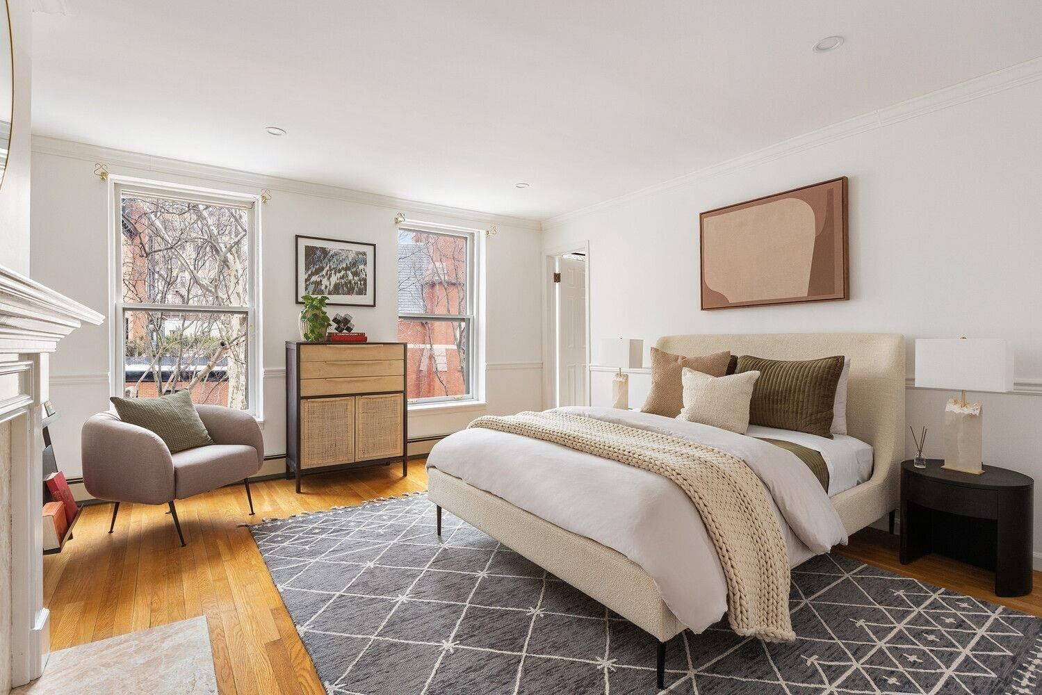 Set on one of Brooklyn Heights' most charming and historic townhouse blocks, 10 Sidney Place is a gracious, 21-foot wide residence offering exceptional scale, a highly functional layout, and an abundance of flexible living space across five full stories plus a basement. The home is beautifully arranged for both everyday living and entertaining. The garden level functions as an ideal casual living floor, featuring a large kitchen designed for garden use, expansive living and dining areas, and direct access to the rear garden and deck. This level is perfectly suited for relaxed gatherings, indoor outdoor entertaining, and day to day living. Above, the parlor floor is a classic entertaining level with a grand living room spanning the width of the home. The scale and proportions create a dramatic yet warm setting for formal living and entertaining. A second kitchen on this floor provides excellent functionality and flexibility, allowing for seamless hosting across multiple levels. The upper floors offer an impressive number of bedrooms and flexible rooms, allowing the home to adapt easily to a variety of lifestyles. The third floor is currently configured as a generous primary suite with a large bedroom, walk in closet, bath, library, and sunroom. The fourth floor features three well proportioned bedrooms and two full baths. The fifth floor offers two additional bedrooms and a wonderful pitched ceiling that creates a distinctive and inviting top floor atmosphere. This level can function as an additional living room, den, media space, or guest suite. The finished basement provides a large recreation area along with laundry, storage, mechanicals, and an additional bath, offering valuable bonus space for gym, playroom, or hobby use. Throughout the home, the layout is thoughtful and flexible, with multiple entertaining zones, two kitchens, and a substantial bedroom count that make the residence exceptionally versatile. Located on picturesque Sidney Place, just moments from the Brooklyn Heights Promenade, Brooklyn Bridge Park, and the neighborhood's celebrated dining and shopping, 10 Sidney Place presents a rare opportunity to own a substantial townhouse with a great layout, abundant space, and enduring appeal in one of Brooklyn's most coveted enclaves.