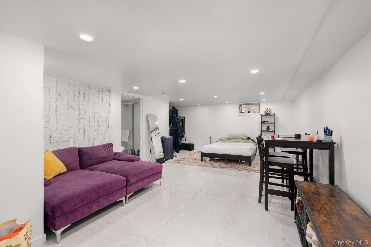 **50-61 46th Street - Sunnyside, Queens** **GUT-RENOVATED ROWHOUSE WITH PRIVATE 2-CAR PARKING - SOLD FULLY FURNISHED** Welcome to 50-61 46th Street, a fully gut-renovated and impeccably designed 3-bedroom, 2.5-bathroom rowhouse offering modern luxury, private outdoor space, and rare two-car parking in the heart of Sunnyside. This is a true turnkey opportunity-the sale price includes all furnishings, decor, and fixtures currently in the home. From living room pieces to bedroom sets, dining furniture, and more, everything is included, allowing for an effortless move-in or immediate investment use. A deep front garden and classic redbrick facade create striking curb appeal on a quiet, tree-lined block. Inside, the lower level opens to a sun-filled sitting area with a powder room and generous coat closet, flowing seamlessly into an expansive open-concept living and dining space. Elegant hardwood floors, recessed lighting, and oversized sash windows enhance the home's bright and airy feel. The kitchen features a spacious eat-in island, sleek black granite countertops, custom cabinetry, and stainless-steel appliances. Just beyond, a private rear patio provides the perfect setting for outdoor dining or entertaining. Upstairs, three well-proportioned bedrooms offer comfortable living. The primary suite accommodates a king-size bed, while the additional bedrooms comfortably fit full-size beds. All include built-in closets and share access to a beautifully finished windowed five-piece bathroom with porcelain tilework, double vanity, step-in shower, and Jacuzzi soaking tub. The fully finished cellar-with a separate entrance, full bathroom, and polished tiled floors-adds exceptional flexibility as a media room, home office, gym, guest suite, or recreation space. Additional highlights include brand-new plumbing and electrical systems, an in-home washer and dryer, private outdoor space, and private two-car parking-an exceptional amenity in this neighborhood. Located near the vibrant dining corridors of 48th Avenue and Greenpoint Avenue, with convenient access to Long Island City, Greenpoint, Williamsburg, and LaGuardia Airport, this home also offers easy access to I-278, I-495, local bus lines, and the 7-subway line. A rare opportunity to purchase a fully renovated, fully furnished Sunnyside townhouse-where everything you see is included in the price.