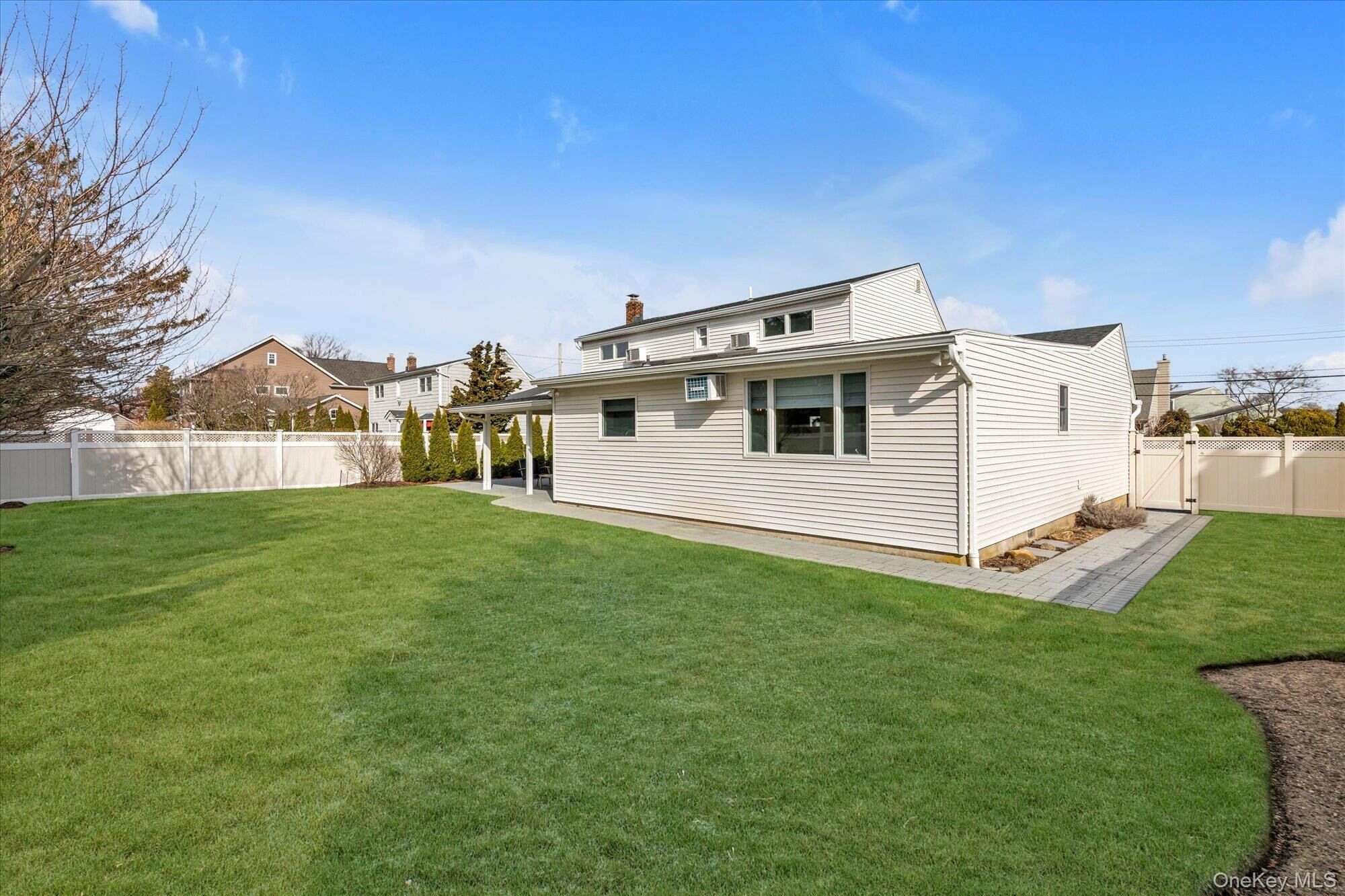 Completely reimagined, this turn-key masterpiece located in Massapequa Park, with convenient access to parks, railroad and shopping. This stunning 4-bedroom, 2-bathroom Cape Cod, with rear addition, has been meticulously completely renovated to offer the ultimate modern suburban lifestyle. Feel the quality the moment you step onto the rich oak hardwood floors that run throughout the entire home. Large windows, flood the living spaces with natural light, creating an open and airy feeling. The kitchen is a true centerpiece-a sun-drenched, open-concept with multiple skylights. It boasts white quartz countertops, light oak cabinets, and a full stainless steel appliance package.The two full bathrooms are spa-inspired sanctuaries. They showcase porcelain floor tiles, large glass-enclosed walk-in showers with elegant quartz counters. Pride of ownership is yours to enjoy!