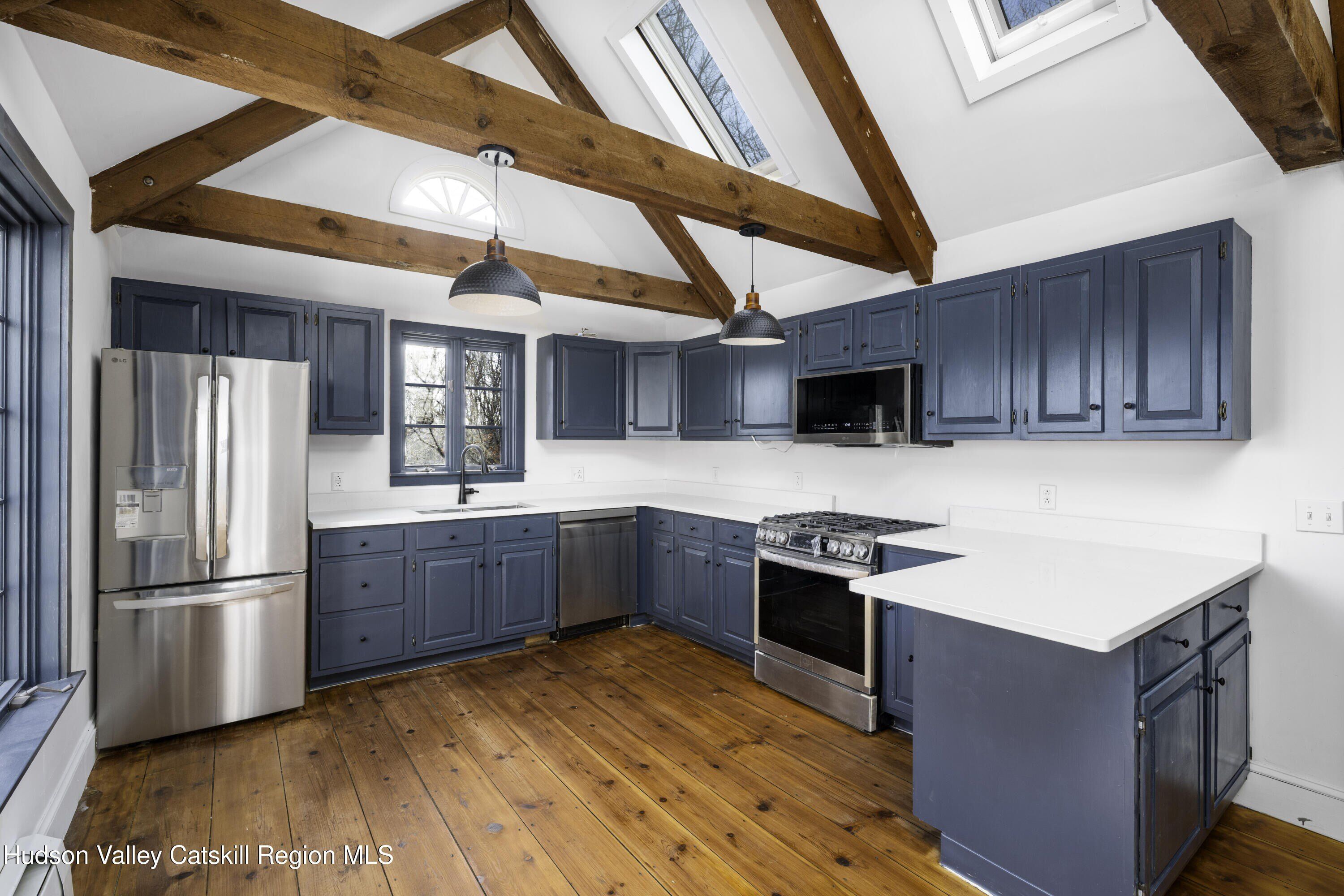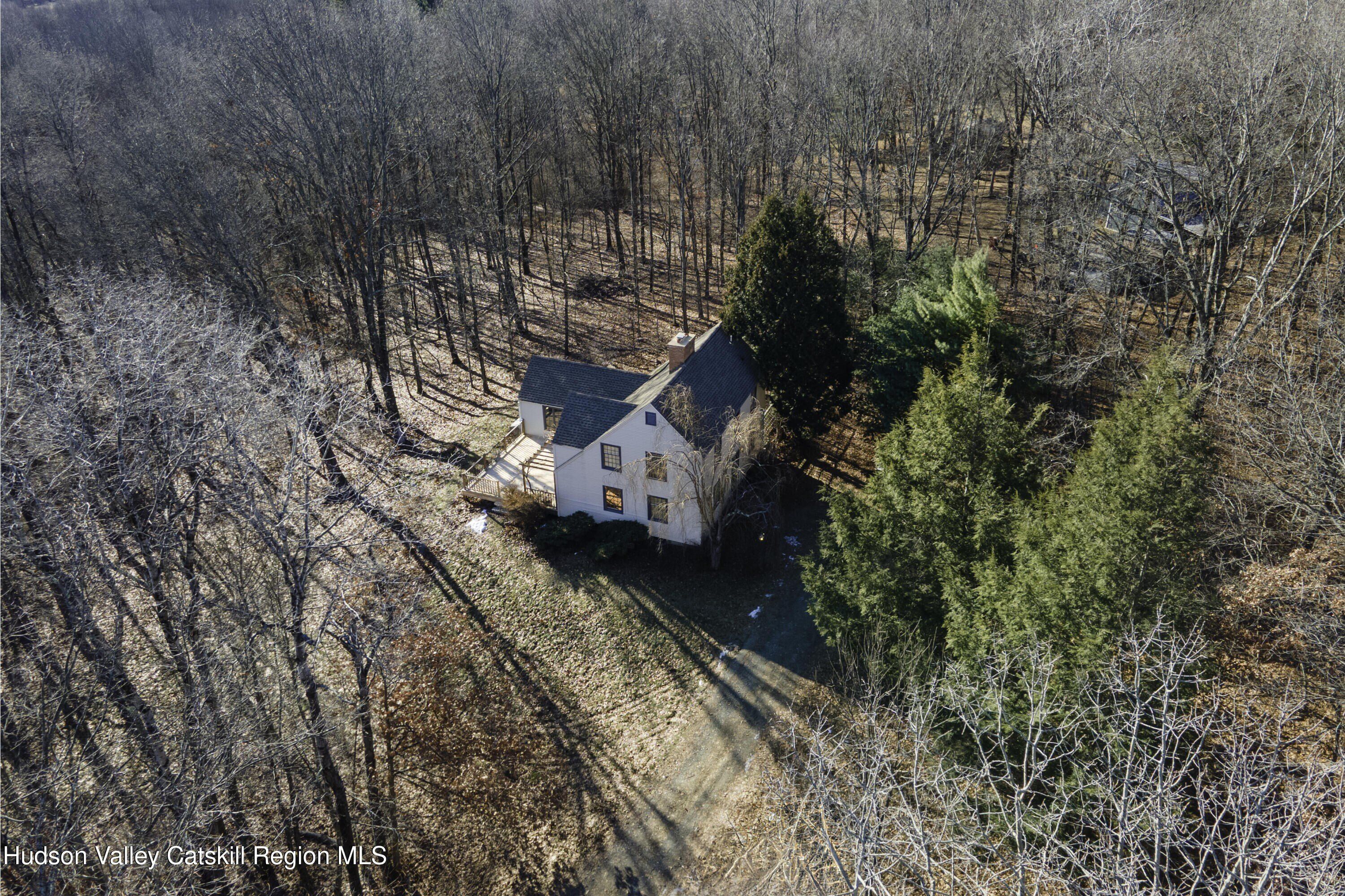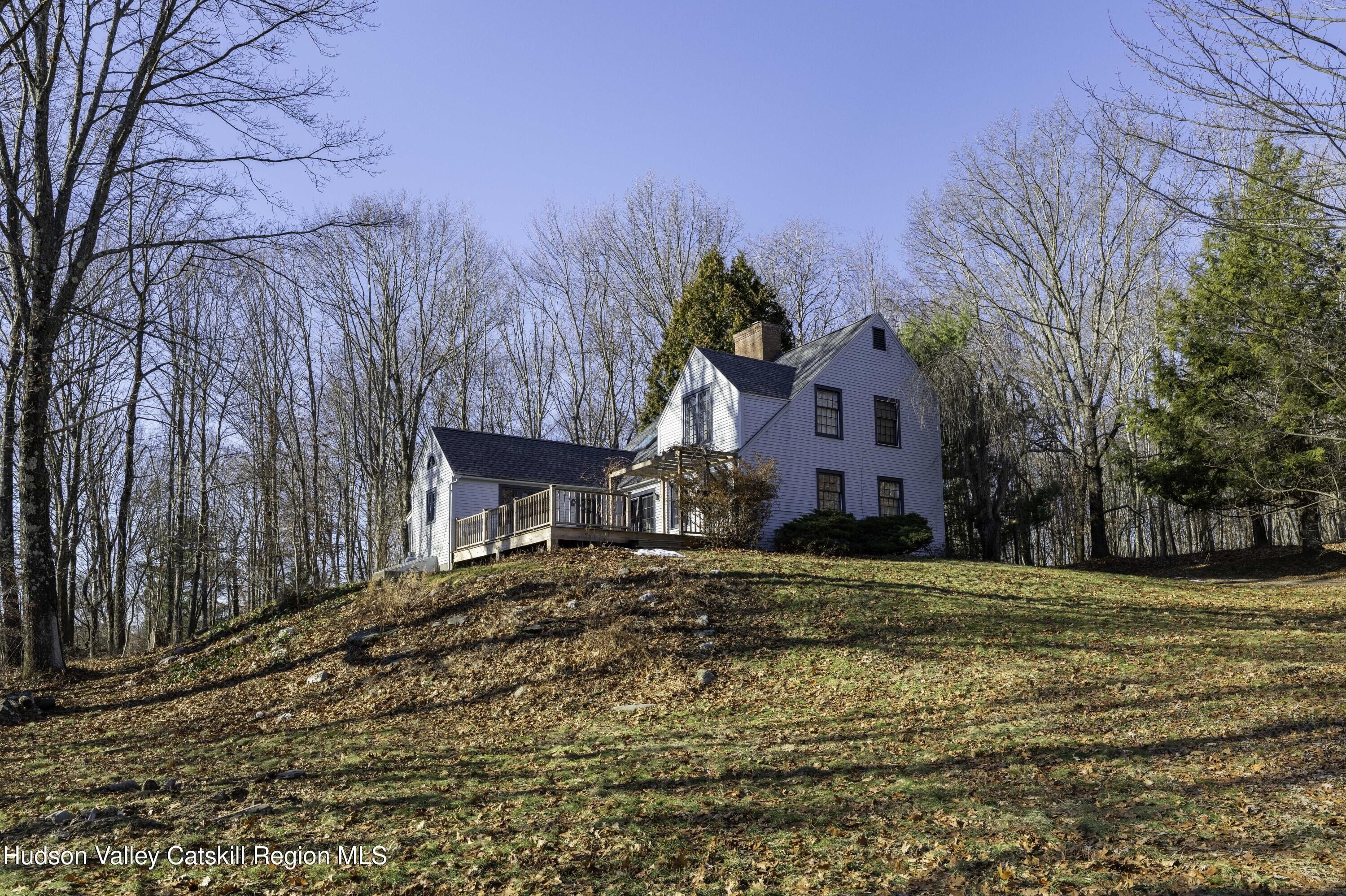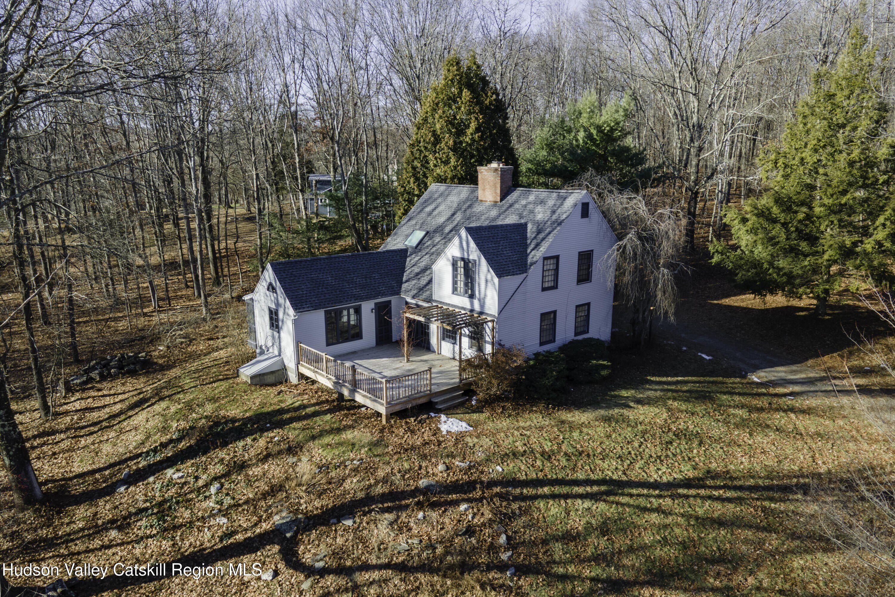 Welcome to 57 Wildflower Hill, a stylish 3-bedroom, 2.5-bath retreat set on 3.34 secluded acres. Offering 1,876 square feet of refined country living, this beautifully updated home is ideal as a weekend escape or full-time residence. The reimagined lower level features hardwood floors, beamed ceilings, and an open living, dining, and kitchen layout. The modern kitchen showcases blue cabinetry, Dove Lace quartz countertops, and brand-new stainless steel appliances, and opens to both a screened porch and an expansive deck-perfect for relaxing or entertaining amid nature. A thoughtfully updated half bath adds charm, while abundant natural light and skylights enhance the home's airy, elegant feel. A full basement offers ample storage or future expansion. Privately located on exclusive Wildflower Hill, yet just 30 minutes from Rhinebeck, Hudson, Catskill, and the Wassaic Harlem Line station, this serene Hudson Valley hideaway is a must-see for those seeking peace, privacy, and convenience.