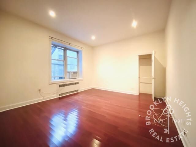 NO FEE - Spacious Studio in Great Art Deco Building w/ access to shared courtyard and laundry. 3rd floor elevator building. Prime Brooklyn Heights. Rarely Available. This good layout studio has a separate kitchen with full size appliances, large living space, good closet space, high ceilings, hardwood floors throughout, and full tiled bathroom. Heat and hot water included.