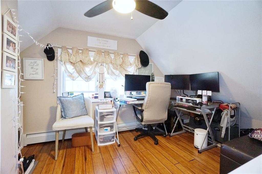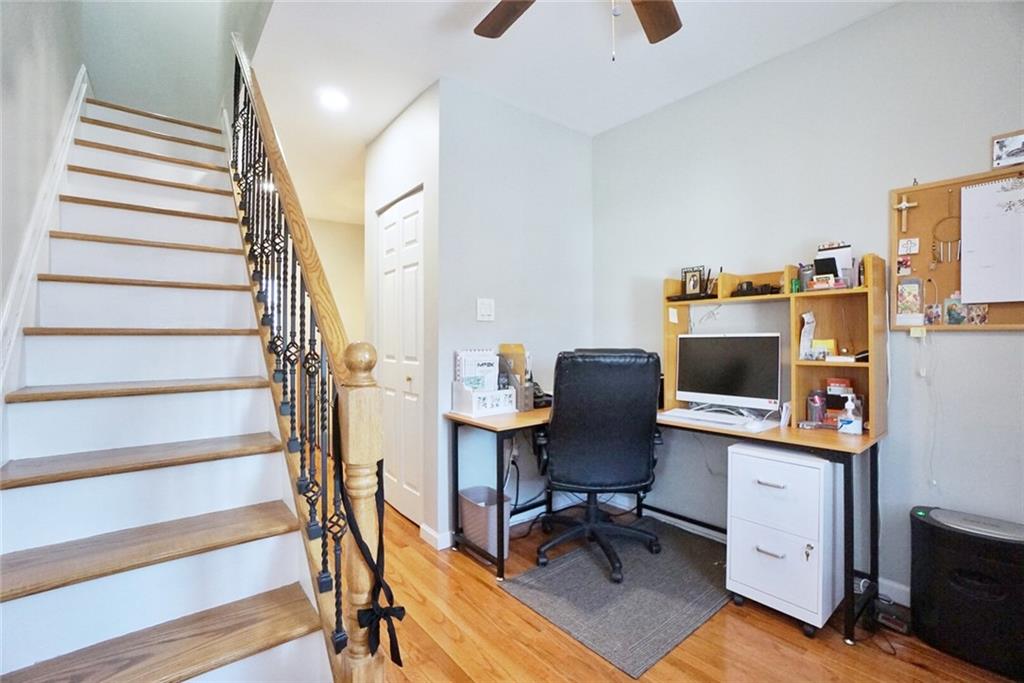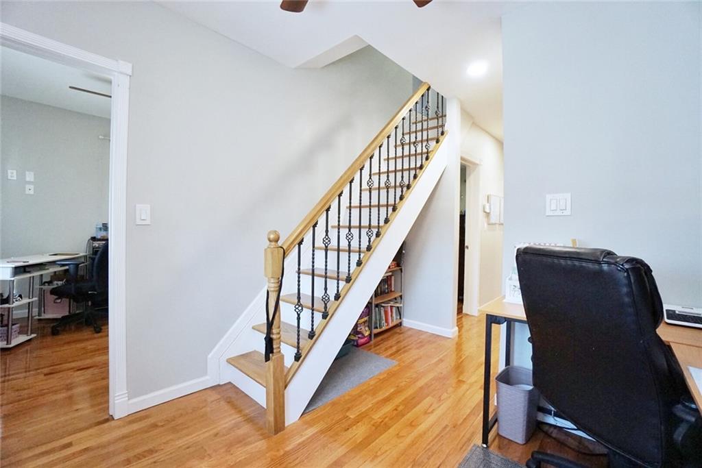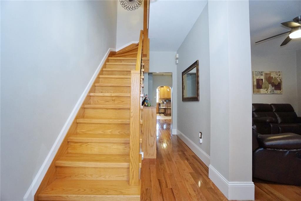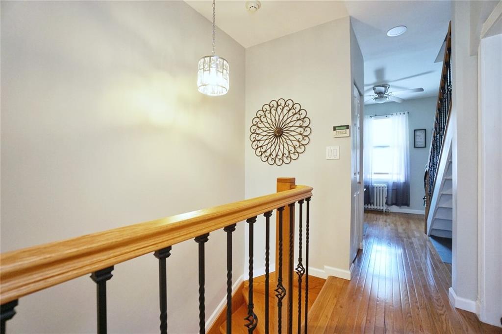 This home has been beautifully redone including finely crafted custom kitchen, premium appliances, hardwood floors, full bath, 3/4 bath, overhead lighting & ceiling fans, roof, windows, multiple zone heating system & maintenance free yard. Level 1 - finished porch, large formal living room, large formal dining room, pristine kitchen, 3/4 bath, entrance to the yard. Level 2 - two bedrooms, office space & full bath. Level 3 - two bedrooms. Basement - full unfinished, storage & utilities.