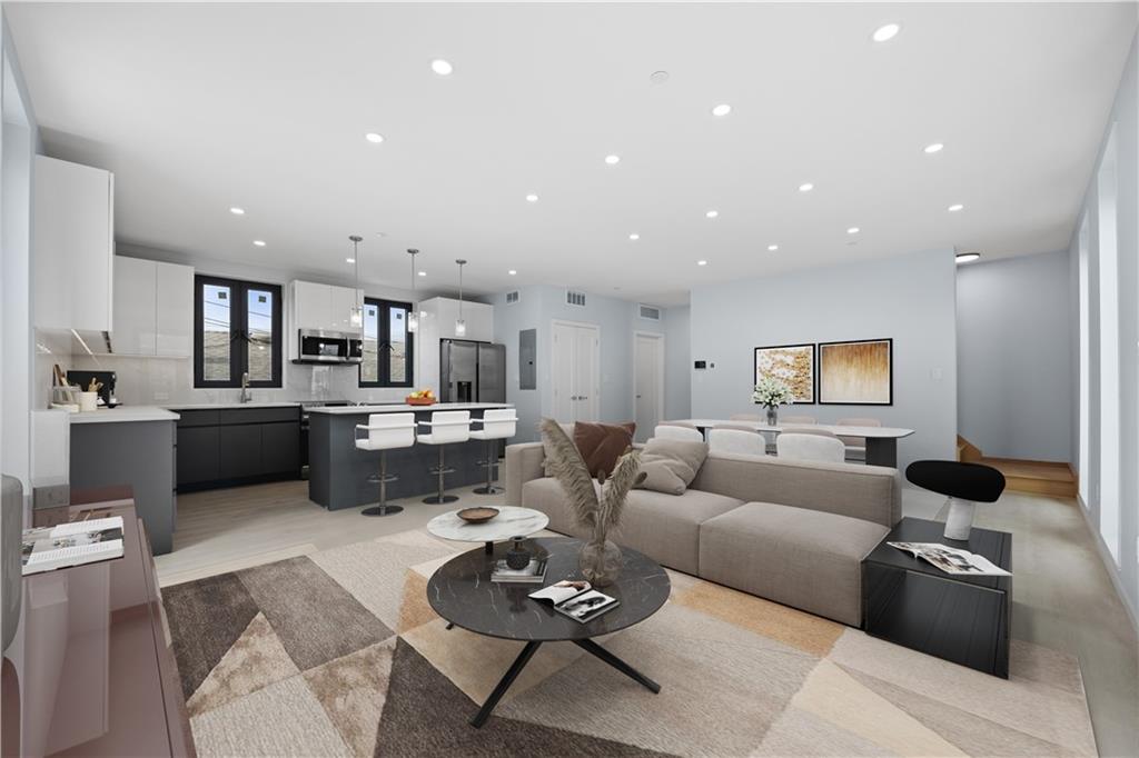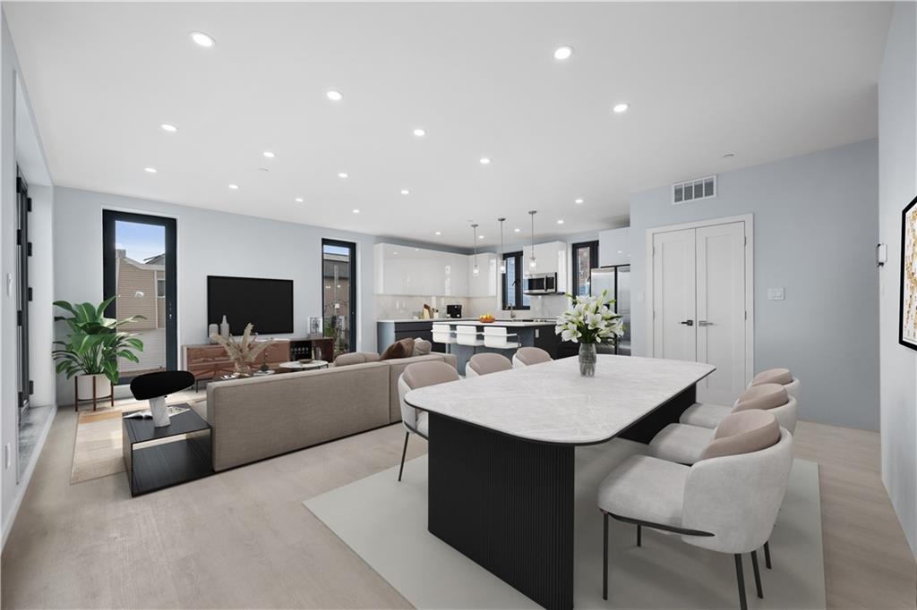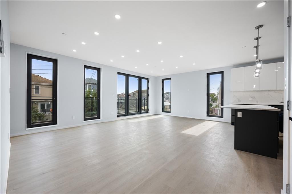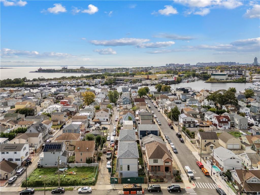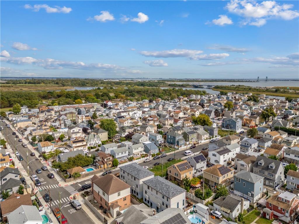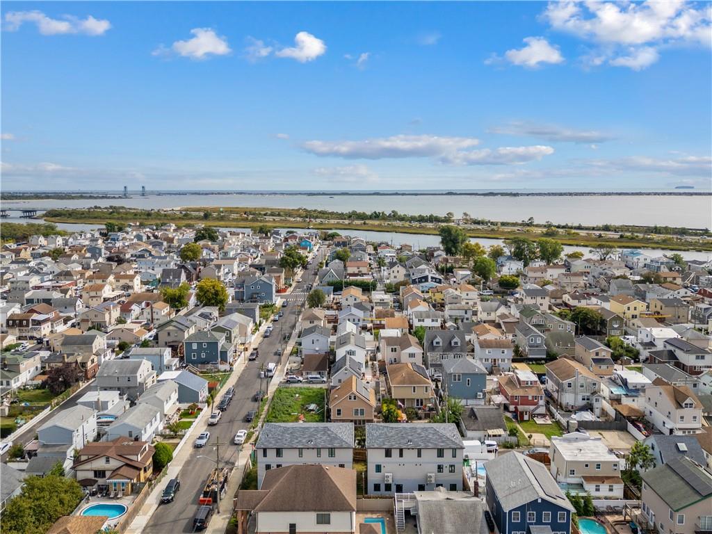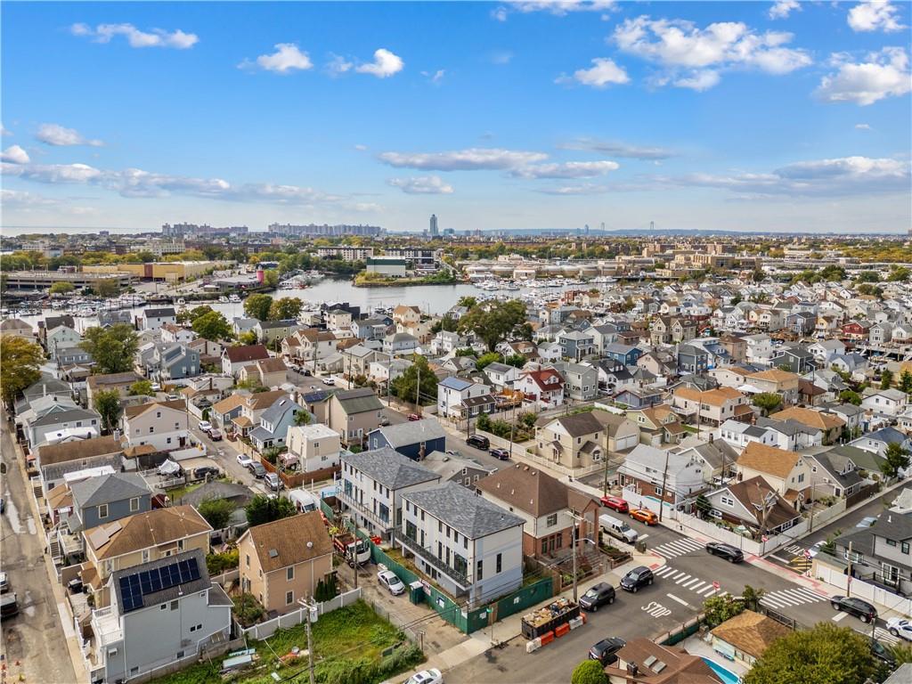 Presenting a remarkable new addition to Gerritsen Beach, this architecturally designed 3-story semi-detached home combines a striking exterior with modern, bespoke interior finishes. Featuring a 3 bedroom, 2.5-bath duplex, it includes a custom kitchen with marble countertops, stainless steel Samsung appliances, and a spacious island. The contemporary design extends to luxurious bathrooms, radiant heated floors throughout, and a convenient washer and dryer hook-up. Natural light pours in through triple-pane, sound-attenuating windows, while the multi-zone HVAC system ensures year-round comfort. Additional space offers flexibility for an office or guest room. The home also boasts chic modern floors, a balcony, a garage, a driveway, and a private backyard perfect for entertaining. Energy-efficient construction keeps costs low, and the location provides easy access to shops, transportation, parks, schools, marinas, and a private beach club.