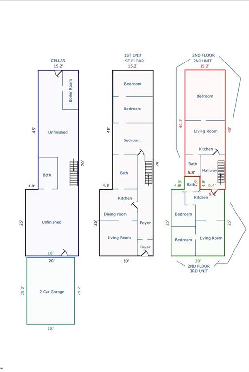 First time on the market, this 3 family semi-detached home located in Dyker Heights 1st floor offers 3 bedrooms, wood floors, full bath, eat-in-kitchen, living room, access to full semi finished basement 3/4 bath with endless possibilites. 2 car garage, yard access through basement and garage. 2nd floor front apartment (Month to Month), features 2-bedrooms, eat-in-kitchen, wood floors, window treatments, full bath, 2nd floor rear apartment (Month to Month) 1 bedroom, wood floors, window treatments, full bath. Roof is 6 years old, solar panels for main apartment, basement, and common hall area, replacement windows, bright and airy hallway leading to walk-up to apartments. The property provides spacies accommodations, building dimensions 20 x 70, on a lot size of 20 x 125.25. Garage access with auto-matic opener provides quick access into the home. Conveniently located near the N and D train short distance to elementary school, easy access to Manhattan, restaurants, supermarkets. All offers in writing through listing agent with pre-approval, proof of funds and attorney information, Sold as is. Apartment furniture photo shopped.