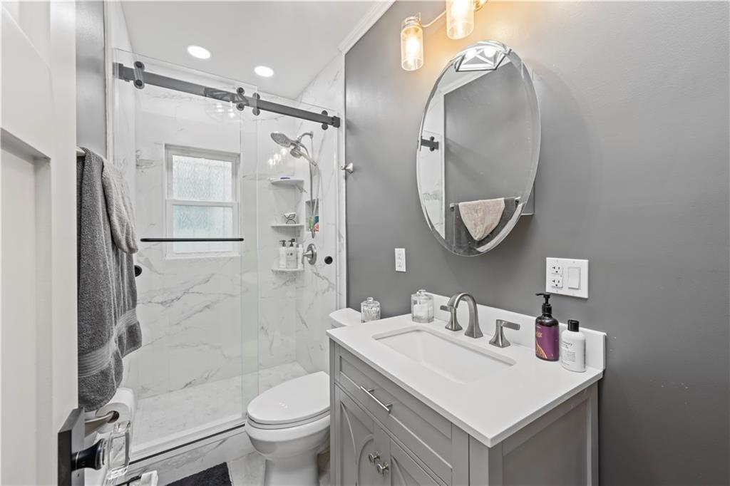 Experience modern comfort and convenience in this beautifully renovated one-floor, semi-attached ranch located in the heart of Gravesend. Completed in March 2025, this home has been thoughtfully upgraded with high-end finishes and impeccable attention to detail throughout. Inside, you’ll find 3 spacious bedrooms, 2 stylish updated bathrooms, and a fully finished basement featuring its own separate back entrance. The main floor also offers an additional back entrance, adding extra convenience and flexibility for everyday living. The open and inviting layout provides both functionality and elegance, making this home ideal for entertaining or relaxing. Parking is effortless with a private carport accommodating 1–2 vehicles. The home is also equipped with fully paid-off solar panels at closing, offering outstanding energy efficiency. Enjoy the added financial benefits of 4 years remaining on the tax abatement and a 19-year warranty on the solar system. The versatile backyard provides the best of both worlds—space for gardening along with a paved garage area for storage or hobby use. Close to shopping, schools, and transportation - this rare find combines modern upgrades, energy savings, and smart design in one exceptional package!