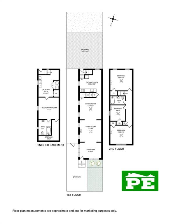 MAIN LEVEL: The entry begins with a versatile foyer—perfect for a home office or mudroom—leading into the living room, formal dining room, and an eat-in kitchen. A rear staircase provides convenient access to both the backyard and the finished basement.