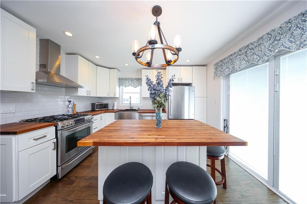 Lovingly maintained and beautifully designed 3-bedroom 2 bath home in the heart of Bay Terrace. Enter to the bright and inviting living room dining room combo. Come into the bright and airy kitchen with butcher block counter tops and island. Complete with GE Cafe Series appliances. Stunning view of the back yard complete with pool and outdoor kitchen that makes entertaining or relaxing a true pleasure! Full finished basement with extra room, plenty of large closets for storage, dedicated laundry room and travertine tile bath. Conveniently located near bus and train. Just minutes from Gateway National Recreation Area. Full attic plus 2 sheds. All appliances stay. Sprinkler System Security cameras and alarm system. new roof 5 years. Updated electrical panel. Hot water heater with 5-year warranty left on it. Central air. Hardwood floors throughout. Solar Panels with 4 years left of property tax abatement. A must see!!!