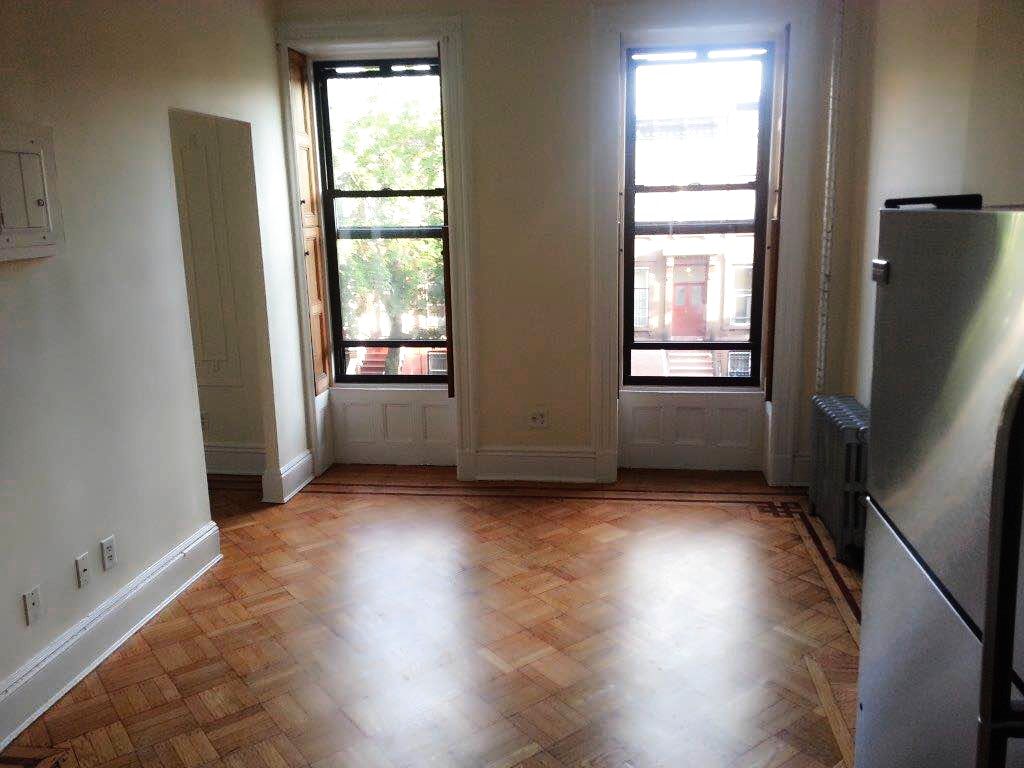 Recently Renovated* Alcove studio in Bedford Stuyvesant available on August 5th (LOCATED AT 409 MADISON STREET BETWEEN TOMPKINS AND THROOP). The owner spared no expense in making this alcove studio flawless from top to bottom. The ceiling height soars at almost 10 feet. The additional side room for this alcove studio makes the apartment feel like a 1 bedroom and can easily fit a queen bed. The parquet floors were meticulously restored to reveal every inch of detail. The original shutters maintain the true character of this majestic brownstone while highlighting the oversized windows that bring in tons of light. The renovated kitchen gives you an abundance of cabinets and countertops with new tile flooring and a stainless steele stove will be installed. The bathroom also sparkles from floor to ceiling with renovations. Tenant pays cooking gas and electricity. No pets please. C train to Kingston-Throop. Laundry is right on the corner of Madison and Throop. Groceries are 1 block away. Zagat's rated restaurants and other close by attractions include the famous Peaches Hothouse, Eugene & Company, Lovers Rock, Bed-Vyne Brew, Common Grounds Coffee, Sincerely Tommy, Therapy Wine Bar, Saraghina's brick oven pizza, Citi Bike Station around the corner and so much more.