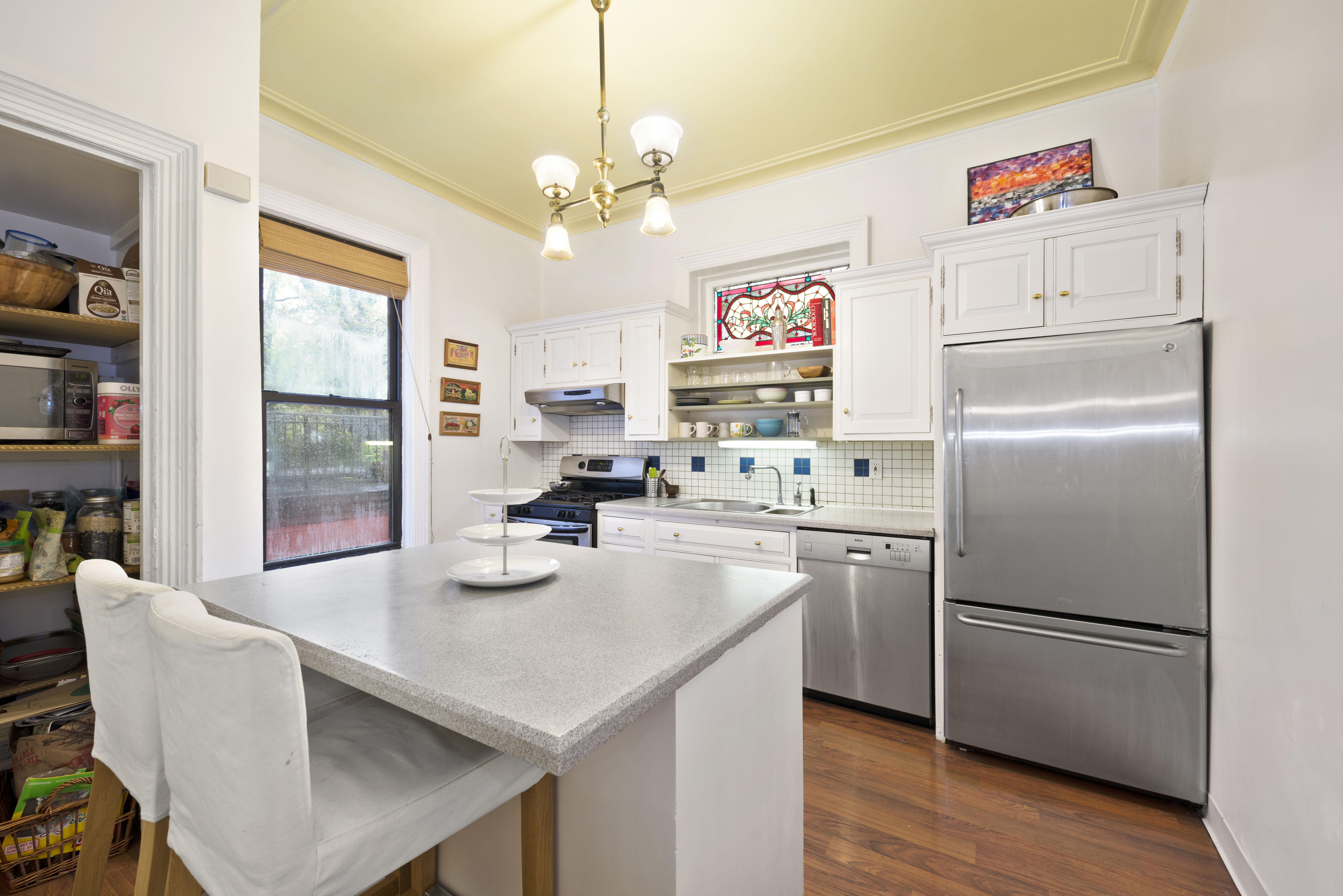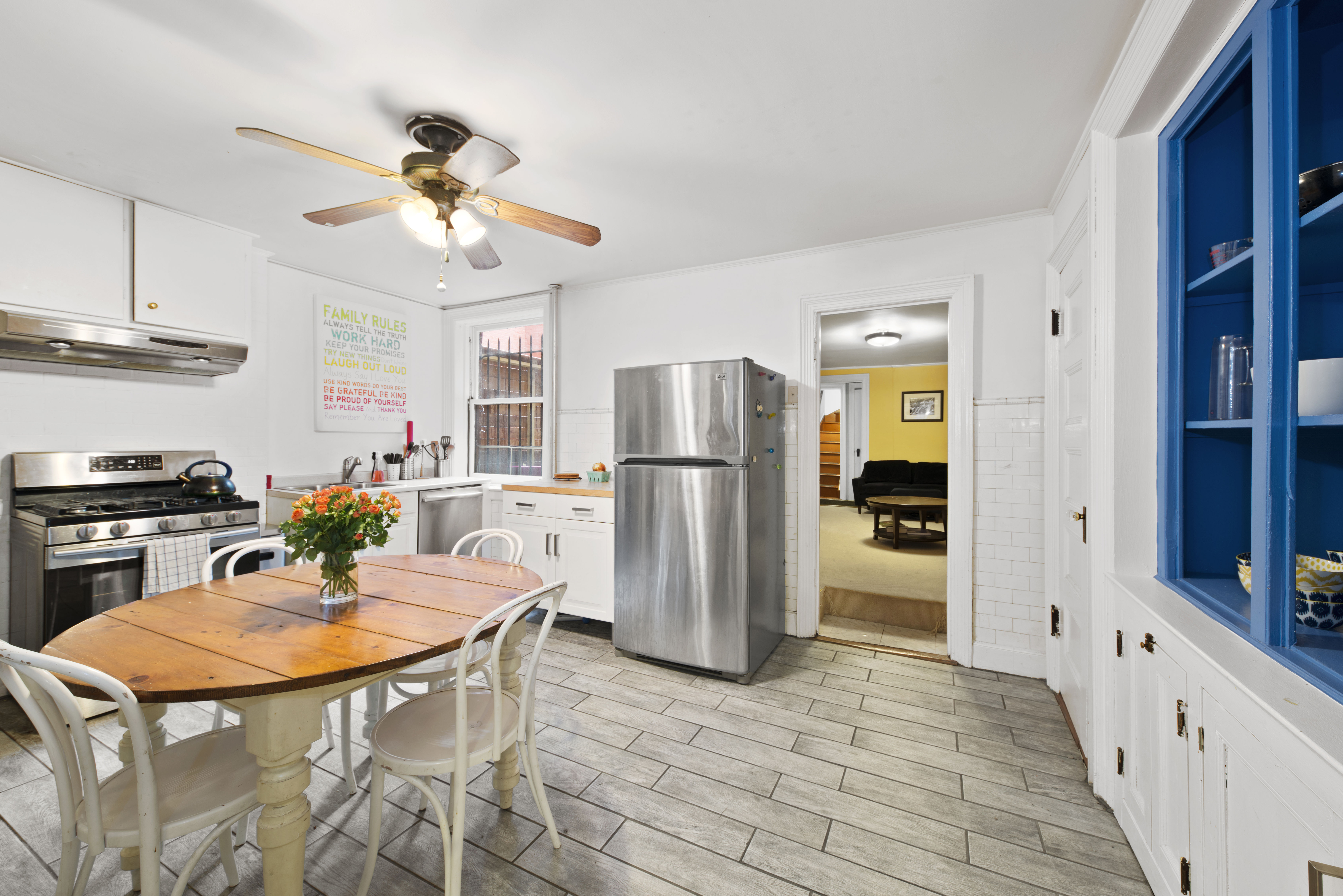 The current configuration is a double duplex. The owner's duplex is currently upstairs while the renters duplex is downstairs. The owner's duplex consists of 3 large bedrooms and 1 small bedroom (that can be used as a guest room or easily be converted into a closet, office, or art studio); the owners duplex also consists of a large living room, eat in kitchen, and a bathroom. The rental duplex consists of 2 large bedrooms (convertible 3), 2 bathrooms, an eat in kitchen, large living room, and access to a quaint garden. Both units have washers and dryers, dishwashers and tons of built in storage. This home is in move in ready condition if you appreciate the classically beautiful original details, but it can also be transformed with little effort and expense into a more contemporary home if that is more of your aesthetic.