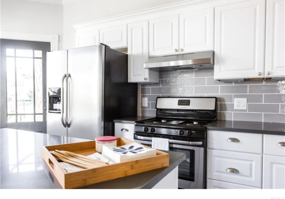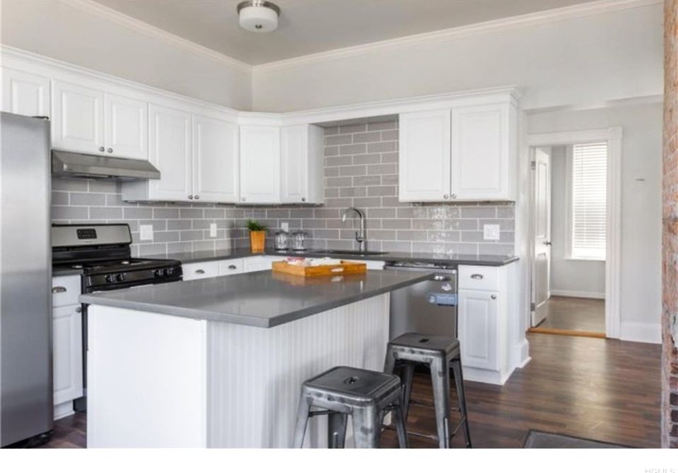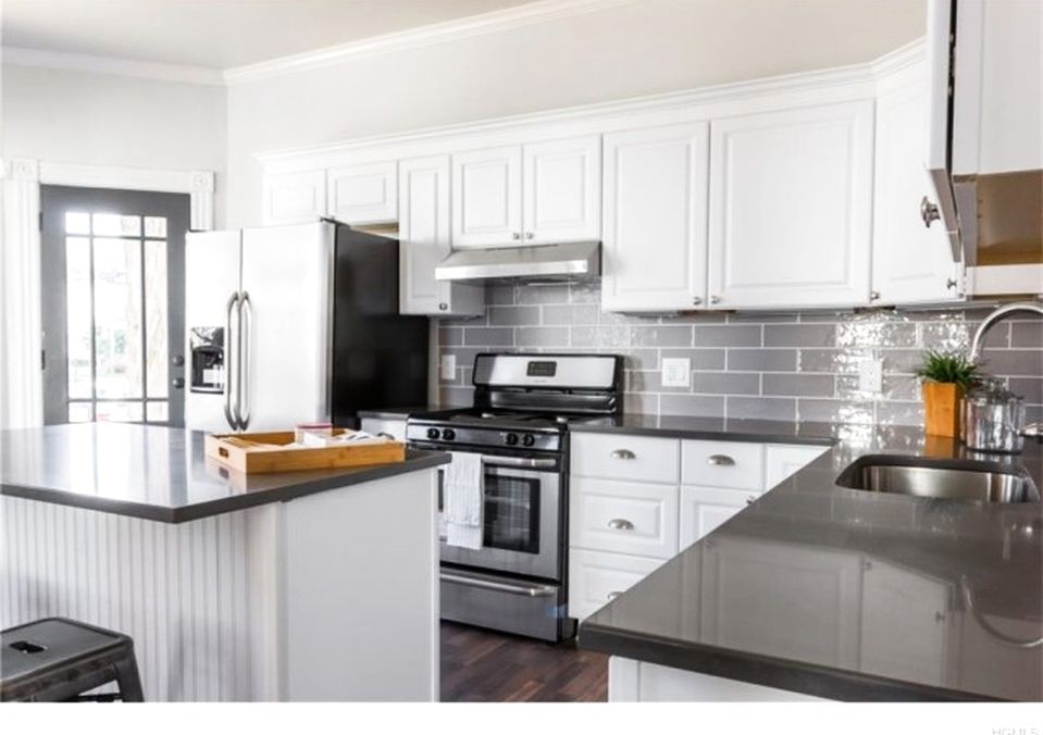 In desirable Uptown Kingston you will find this completely remodeled, three floor Victorian spanning over 3,000 square feet and located on a corner lot. A welcoming front porch welcomes you into your first floor which has a gracious foyer with original restored paneling and high ceilings and built in bench, an office/laundry room, a half bath featuring porcelain tiles and modern fixtures, your eat-in kitchen with door to side porch for your morning coffee and your dining room complete with original stained glass window. You will notice the fireplace (you cant miss it!) in the kitchen, which was uncovered during the remodel process and is believed to be from the original house.Transitional white kitchen cabinetry complete with crown molding, eat in island, undercabinet lighitng, Frigidaire stainless steel appliances with 1 year manufacturers warranty on parts and labor and Quartz Countertops by Caesarstone are some of the details of this awesome kitchen. On the second floor are two bedrooms and one full bathroom complete with modern penny round floor tiles and glossy beveled edge subway tiles on the walls. Also, on the second floor you will find something that you will not find at any other house in this area in a historic home such as this - a MASTER SUITE! The master suite includes a spacious master bedroom with huge bay window along with your very own dressing room complete with a walk-in closet and a spacious master bathroom that features porcelain floors and a carrara marble vanity as well as a huge linen closet. The third floor is roughly 900 sq. ft. of finished space that you can mold to your liking! On demand, tankless hot water and energy efficient, brand new heating system. Completely move in ready with a great layout for family living.