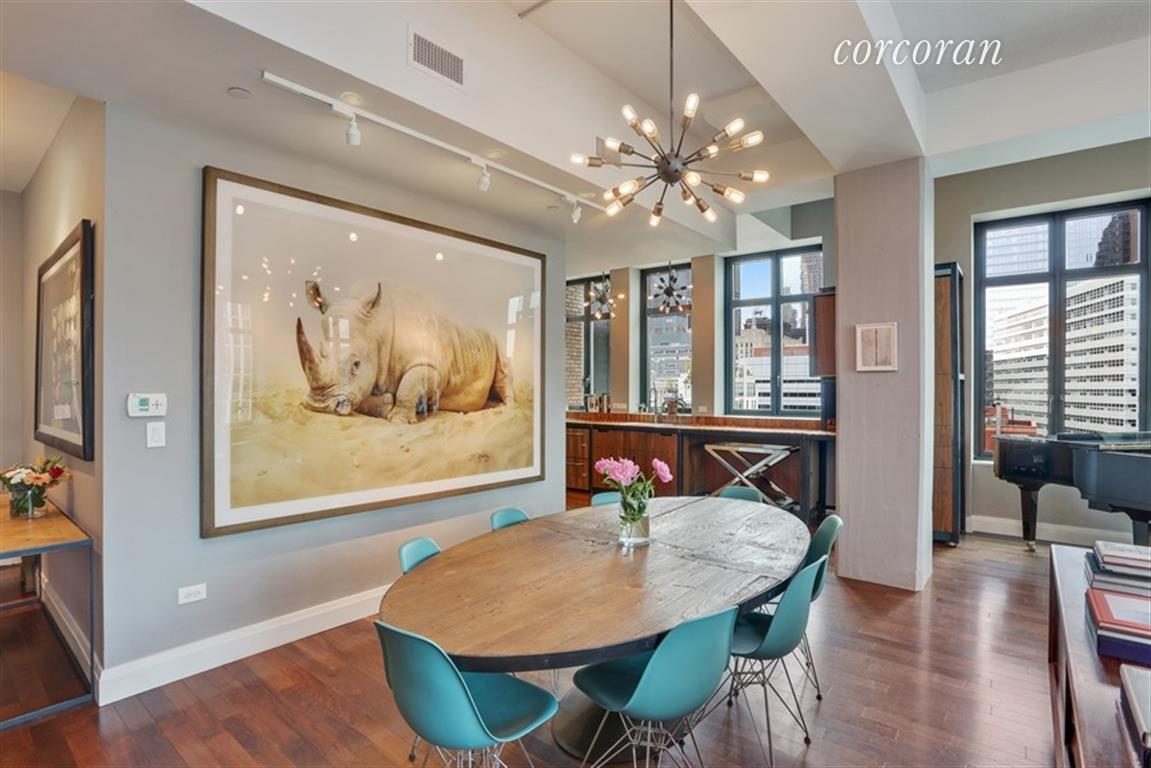 Welcome to your new, magnificent home at Artisan Lofts at 143 Reade Street in the heart of Tribeca. This stunning 3 bedroom, 2.5 bath home with a private outdoor space offers spectacular city and river views from 25 over-sized windows. The 12 ft ceilings and sprawling floor plan give this home an expansive and inviting feeling. The living room is adjacent to the dining area and features an open kitchen with custom walnut cabinetry, stainless steel appliances and a breakfast bar. The master bedroom has two large walk-in closets, a private balcony with river views and an en-suite bath with double vanity and hand-glazed tiles exclusively created for Artisan Lofts. The second bedroom has abundant storage space and Hudson River views. The third room, currently used as an office space, can be easily converted to a bedroom. The renowned design team of Roman and Williams did not spare any expense in this supreme apartment, from the beautiful walnut floors, to the recessed lighting, to the in-unit washer and dryer. This apartment overlooks downtown New York and the Hudson River. Artisan Lofts at 143 Reade Street features a full-time doorman, a lobby with rotating art exhibitions, a Skylit Fitness Center with a yoga studio, a playroom and a roof deck. This prime location is close to many wonderful restaurants, bars, Whole Foods, and the public transportation lines: A/C/1/2/3.