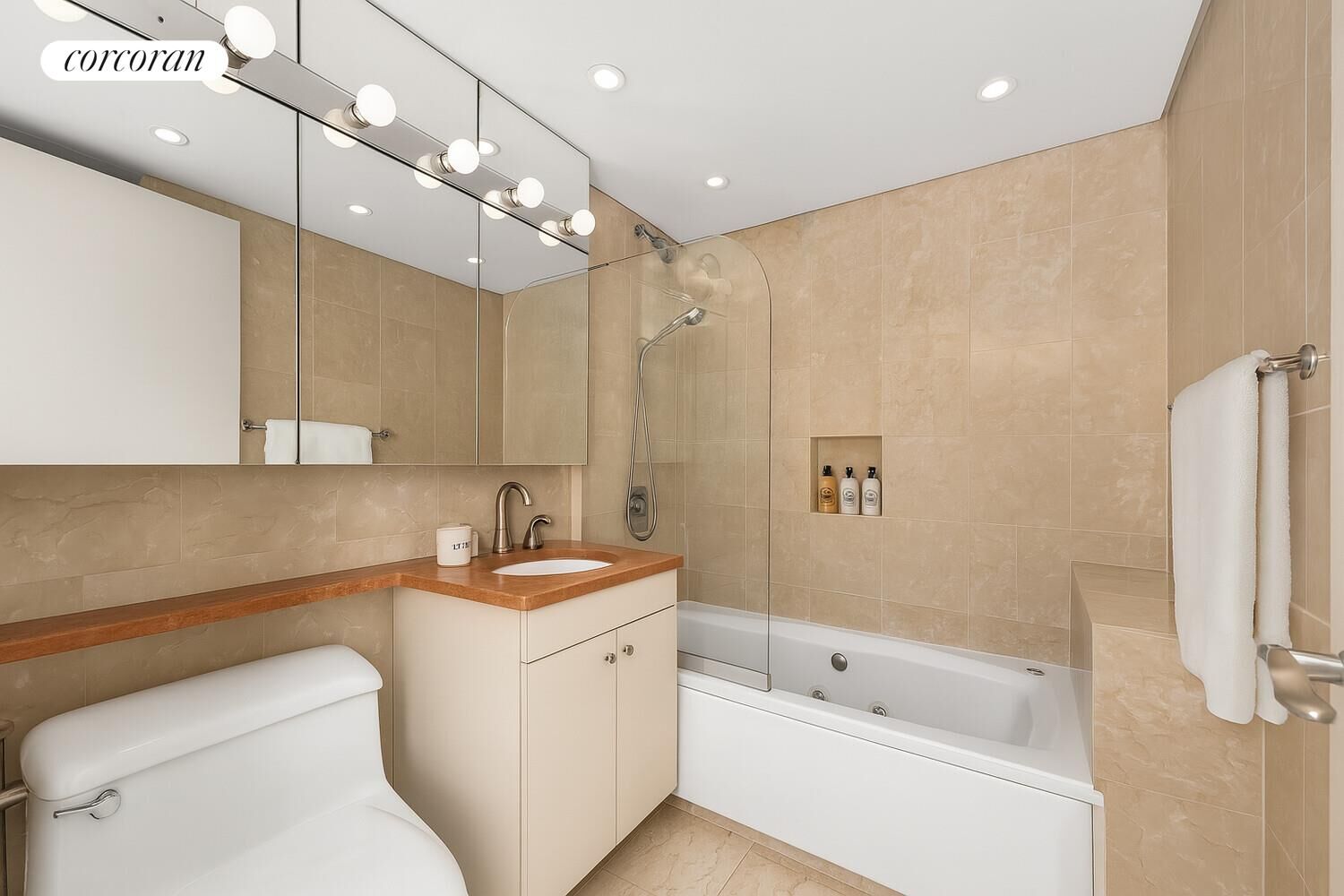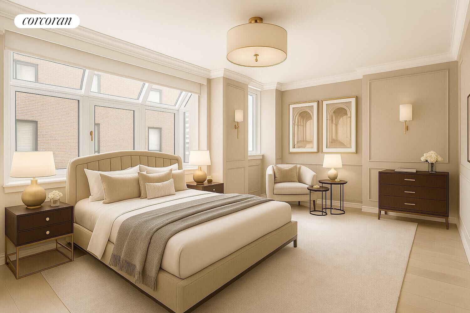 Both bedrooms are thoughtfully located on the western wing for maximum privacy. The serene primary suite boasts a generous layout, an en-suite bath, and an oversized closet-an uncommon luxury in Manhattan residences.