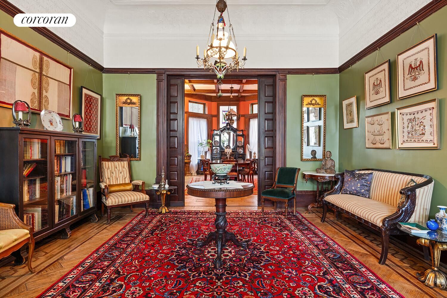 Set within the Mount Morris Park Historic District, the 25-foot-wide residence directly overlooks Marcus Garvey Memorial Park, offering protected light, openness, and a sense of scale that is increasingly rare in Manhattan. Since its construction, the house has had only three owners-an extraordinary continuity that speaks both to the strength of Ware's original design and to the care with which it has been maintained for more than a century. Ware's approach favored restraint, proportion, and livability over spectacle, and that philosophy is immediately felt throughout the home.