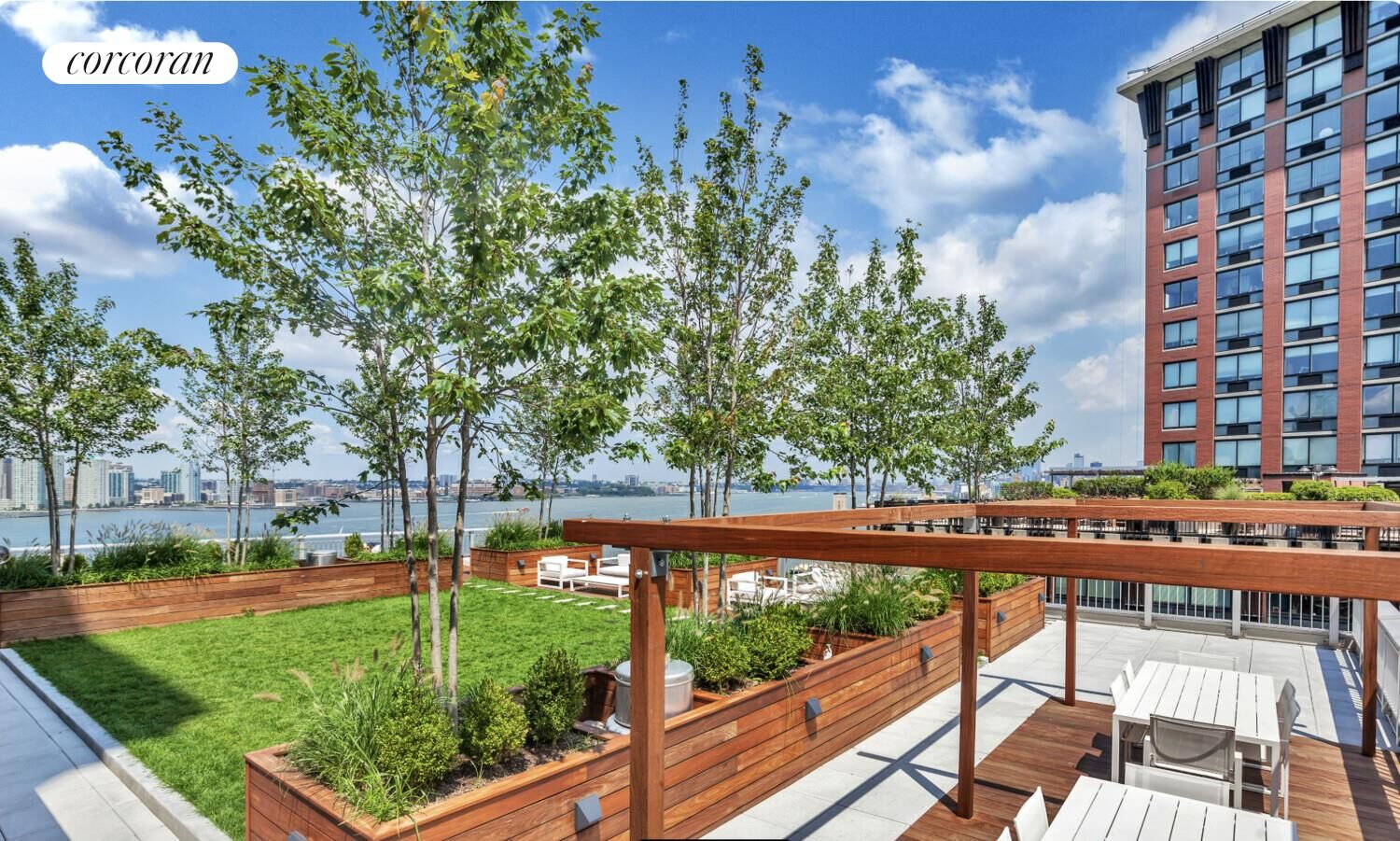 River & Warren offers a full-service lifestyle with a 24-hour doorman and concierge, fitness center and yoga studio, playroom, and landscaped rooftop terrace with BBQ grills and sun deck. Designed by CetraRuddy, the building was meticulously reimagined from the ground up.