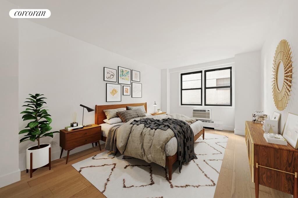 Recently updated, this one-bedroom apartment showcases stunning new white oak wood floors and a spacious kitchen outfitted with new, Frigidaire appliances. Situated on a high floor, it offers a tranquil garden view and serenity that's hard to match.