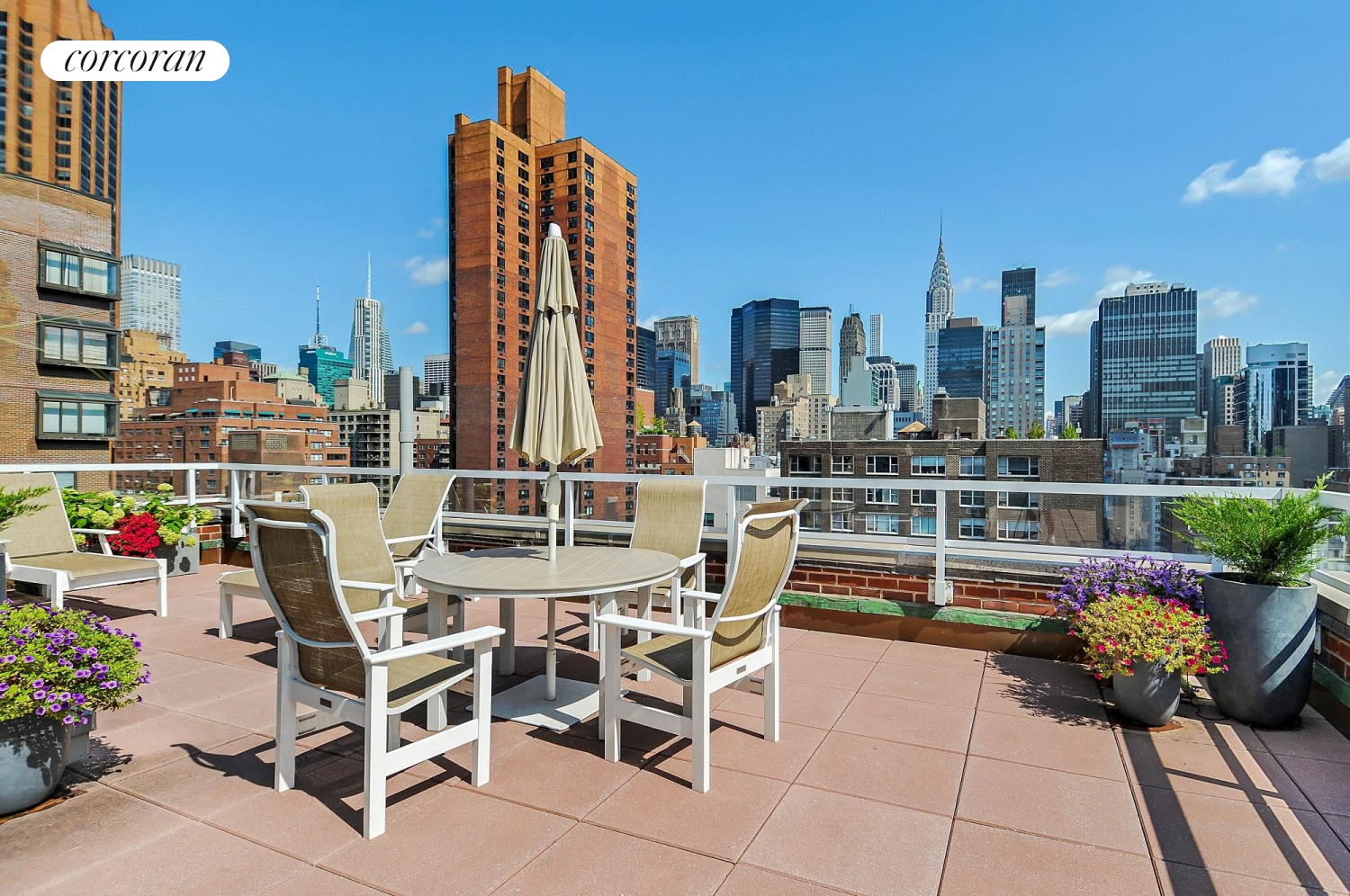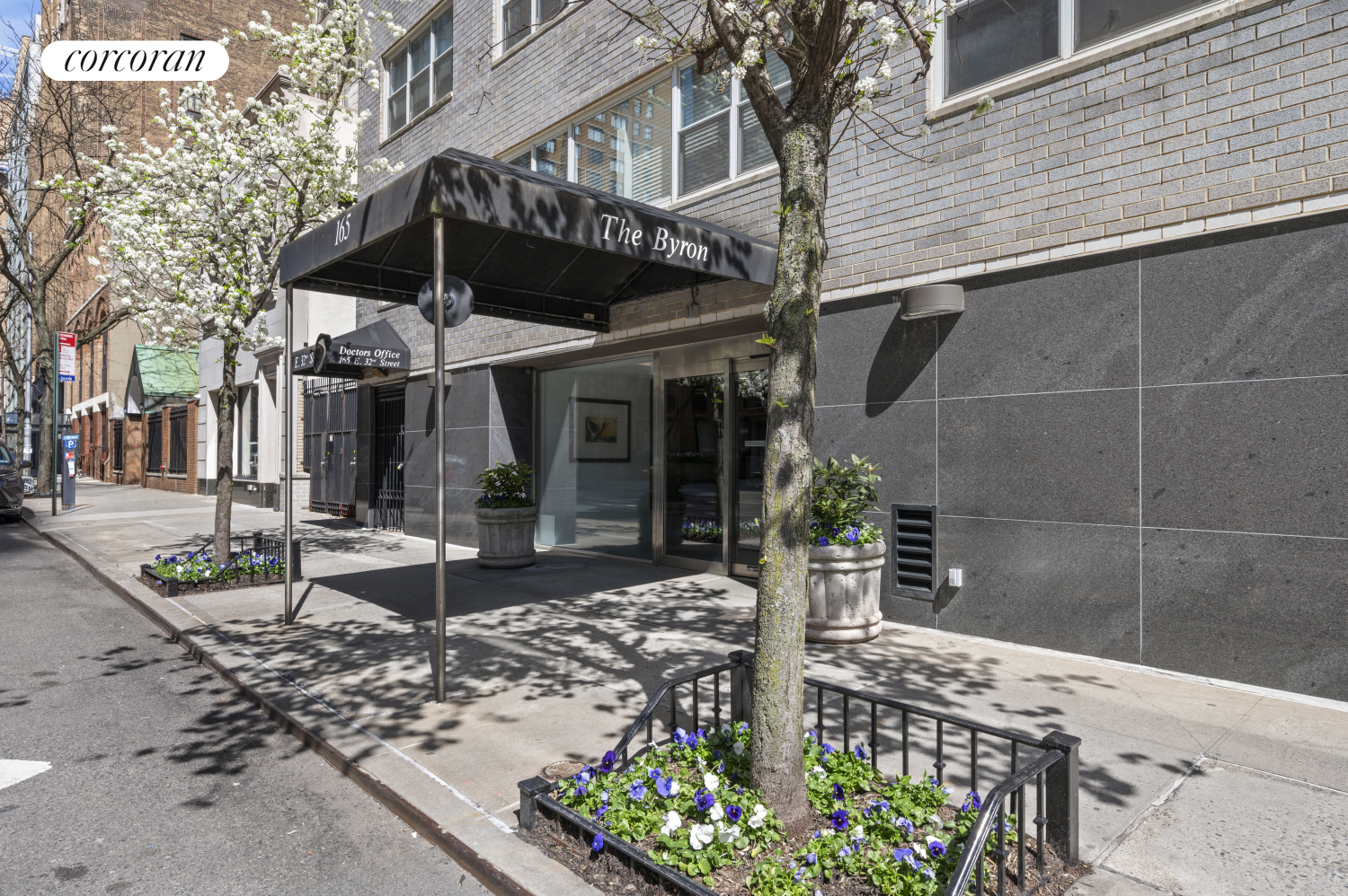 The Byron, located at 165 East 32nd Street, has a 24-hour doorman, newly renovated lobby, and hallways. Amenities include a laundry room, storage, live-in super, and an unparalleled furnished roof deck with iconic skyline views. This is a pet-friendly coop that permits pieds-a-terre, co-purchasing, and gifting, all with board approval. Conveniently located near Grand Central and the 6 train. Enjoy easy access to Trader Joe's, Fairway, movie theaters, shopping, and an endless array of restaurants.