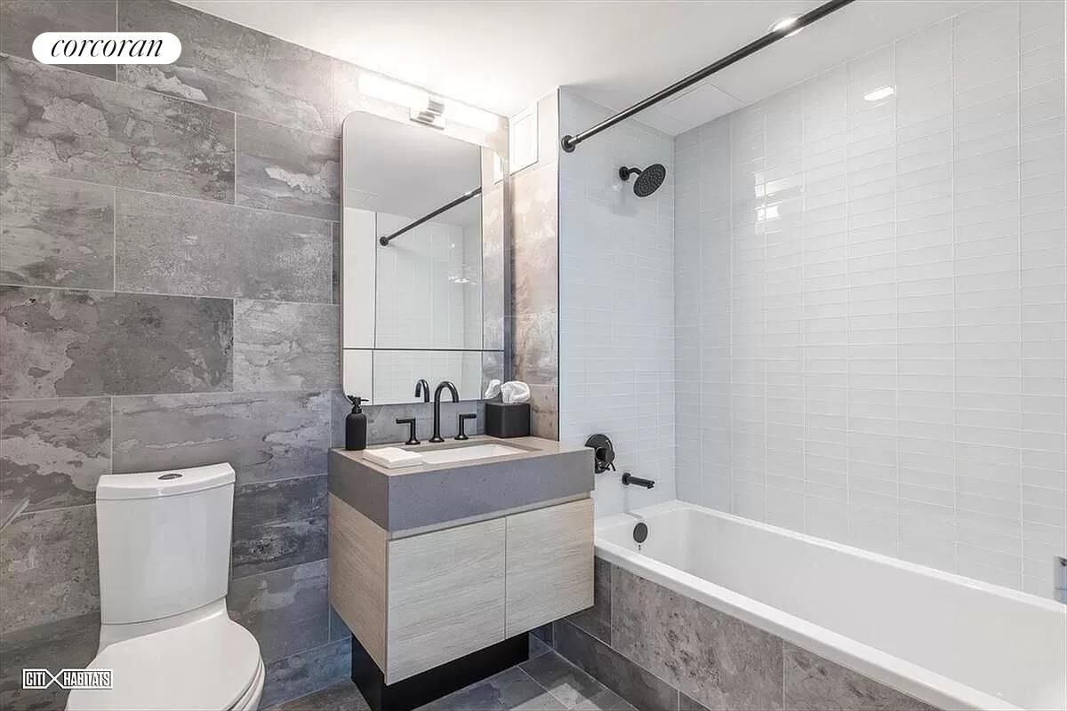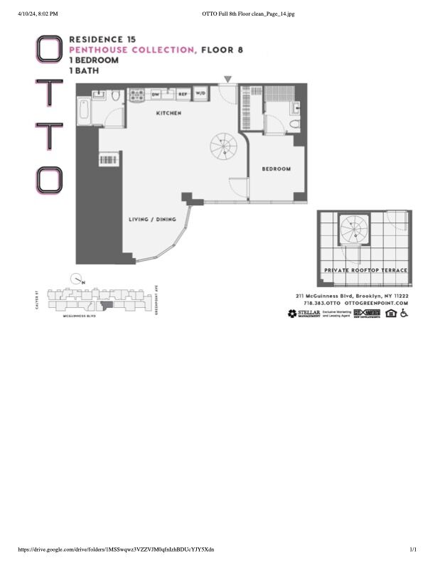 At OTTO Greenpoint, residences boast beautifully designed modern finishes and open plan flexible layouts to fit every lifestyle. Each residence offers expansive floor-to-ceiling windows, solid reclaimed oak floors throughout, Bosch washers and dryers, and a LATCH keyless entry system. Most residences also feature private balconies and terraces. Designer kitchens are complete with light wood custom kitchen cabinetry, GE and Blomberg stainless steel appliances, and waterfall Caesarstone counter tops. Bathrooms feature warm concrete grey tiles with glass tile accent, a custom floating vanity with curved medicine chest mirror, designer black fixtures, and deep soaking bathtubs.