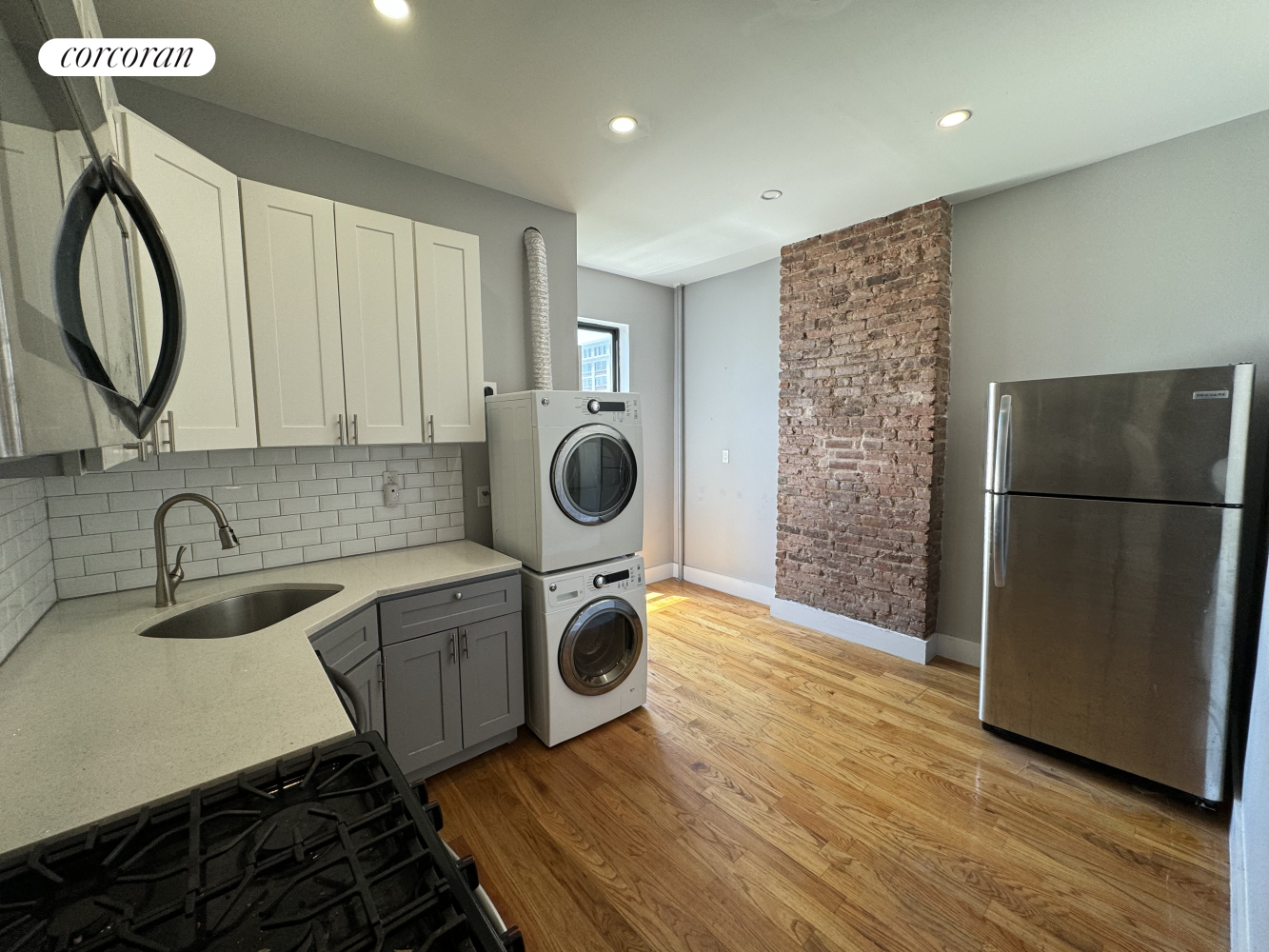 Located on the edge of Greenwood, the apartment is around the corner from Industry City. The ultra large apartment has been fully renovated, from modern floors, large kitchen with new appliances , windowed bathroom, and spacious living room. The primary bedroom is ultra large and bright, fits a king sized bed, has a large closet, the second bedroom fits a full sized bedroom, is quiet with large closet. The apartment has everything you need ,from laundry, space, windows all through out and convenience. A super rare find, this home wont last long!!