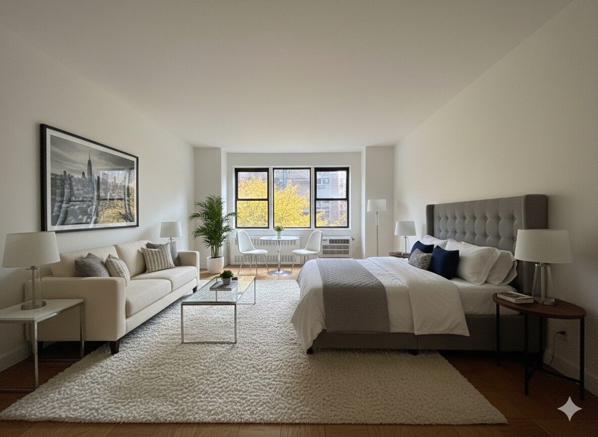 Studio apartment in Midtown Manhattan. Close to ferry and 4,5,6,7 trains. Laundry in basement. Separate kitchen with dishwasher. Gym, Doorman, and elevator building. Please note $20 application fee applicant and 1st month rent and security due at lease signing.*Studio apartment in Midtown Manhattan*Close to ferry and 4,5,6,7 trains*Laundry in basement*Separate kitchen with dishwasher*Gym, Doorman, and elevator building*Please note $20 application fee applicant and 1st month rent and security due at lease signing*Photo uses AI staging