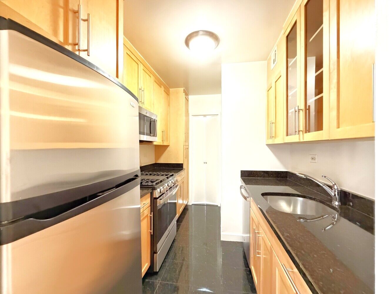 Welcome home! This spacious, light-filled two bedroom features wood floors, an updated kitchen with GE stainless-steel appliances, granite counters, a dishwasher, and abundant cabinetry. The renovated bathroom offers tile and marble finishes. The home includes custom built-out closets and oversized picture windows throughout.Building AmenitiesEnjoy full-service living with a 24-hour doorman, newly renovated double height lobby, swimming pool, gym, sauna-equipped locker rooms, playroom, and lounge.Please Note: The following are the up front costs to the renter when you sign a lease.First Months Rent and Security DepositApp Fees: $20 per applicant/guarantor