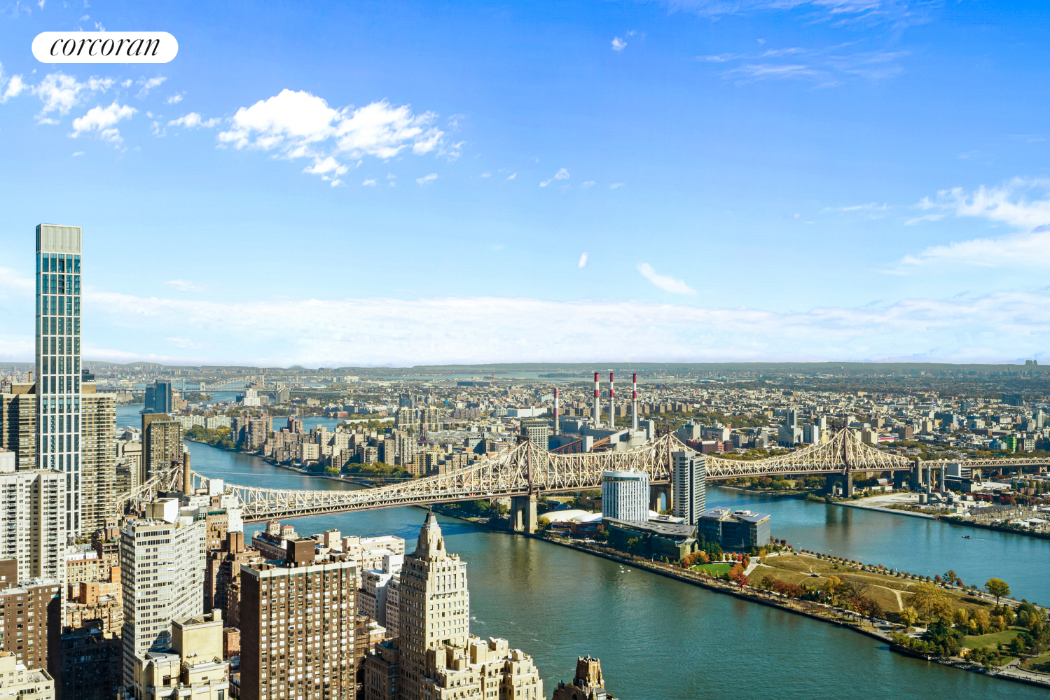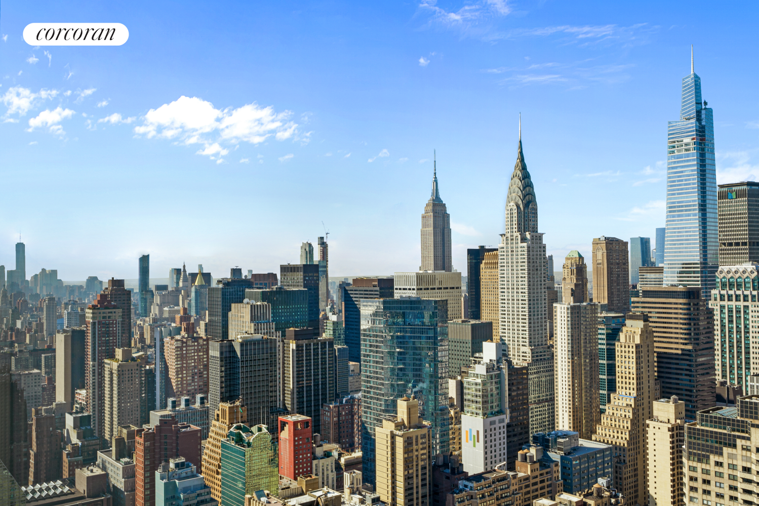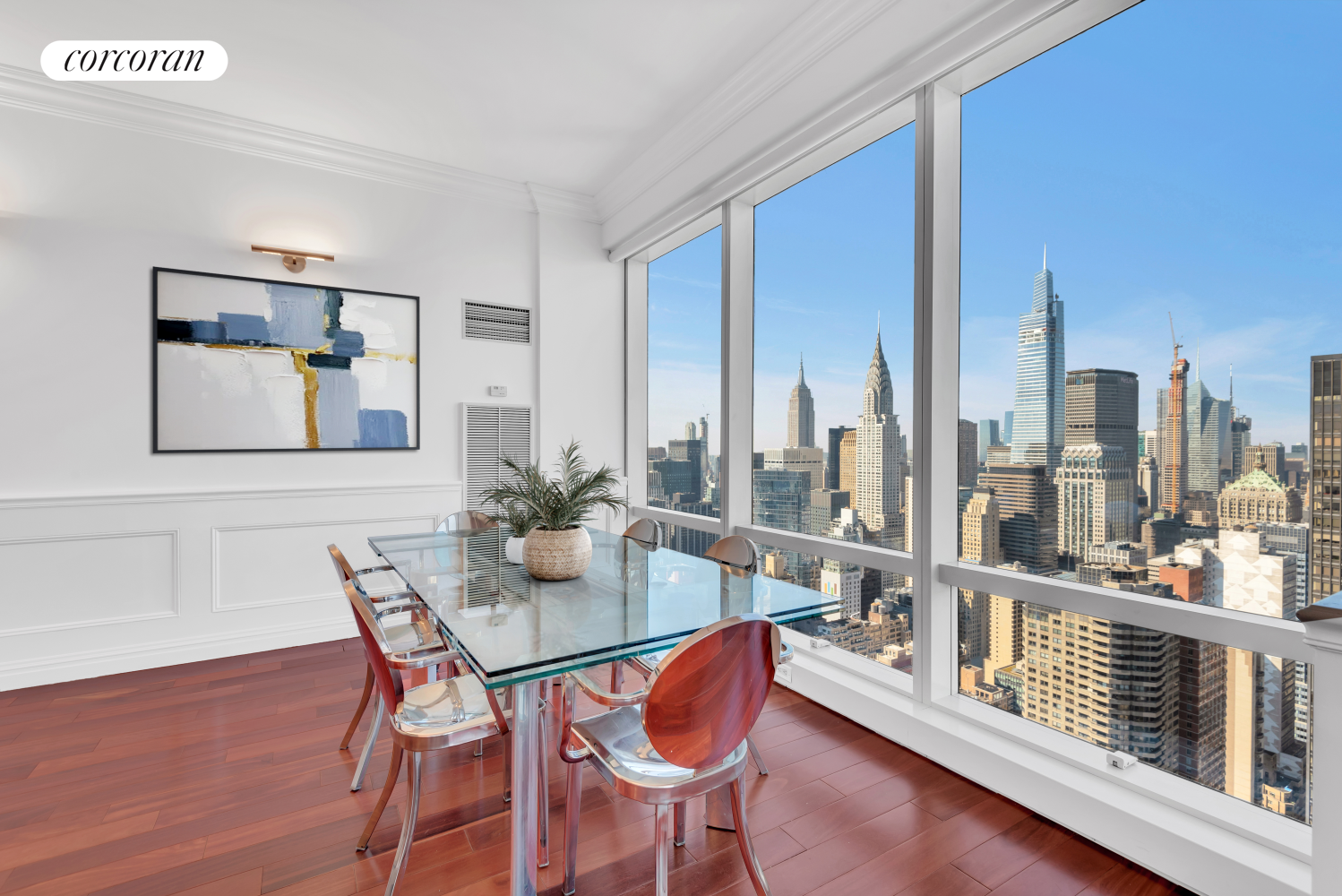 Welcome to Apartment 60E at 845 United Nations Plaza, an exquisite two-bedroom, two-bathroom residence offering 1,493 square feet of luxurious living with sweeping skyline and river views. This corner unit, perched high above the city, boasts floor-to-ceiling windows that flood the space with natural light while framing dramatic north and west views of the East River and Manhattan's iconic skyline.