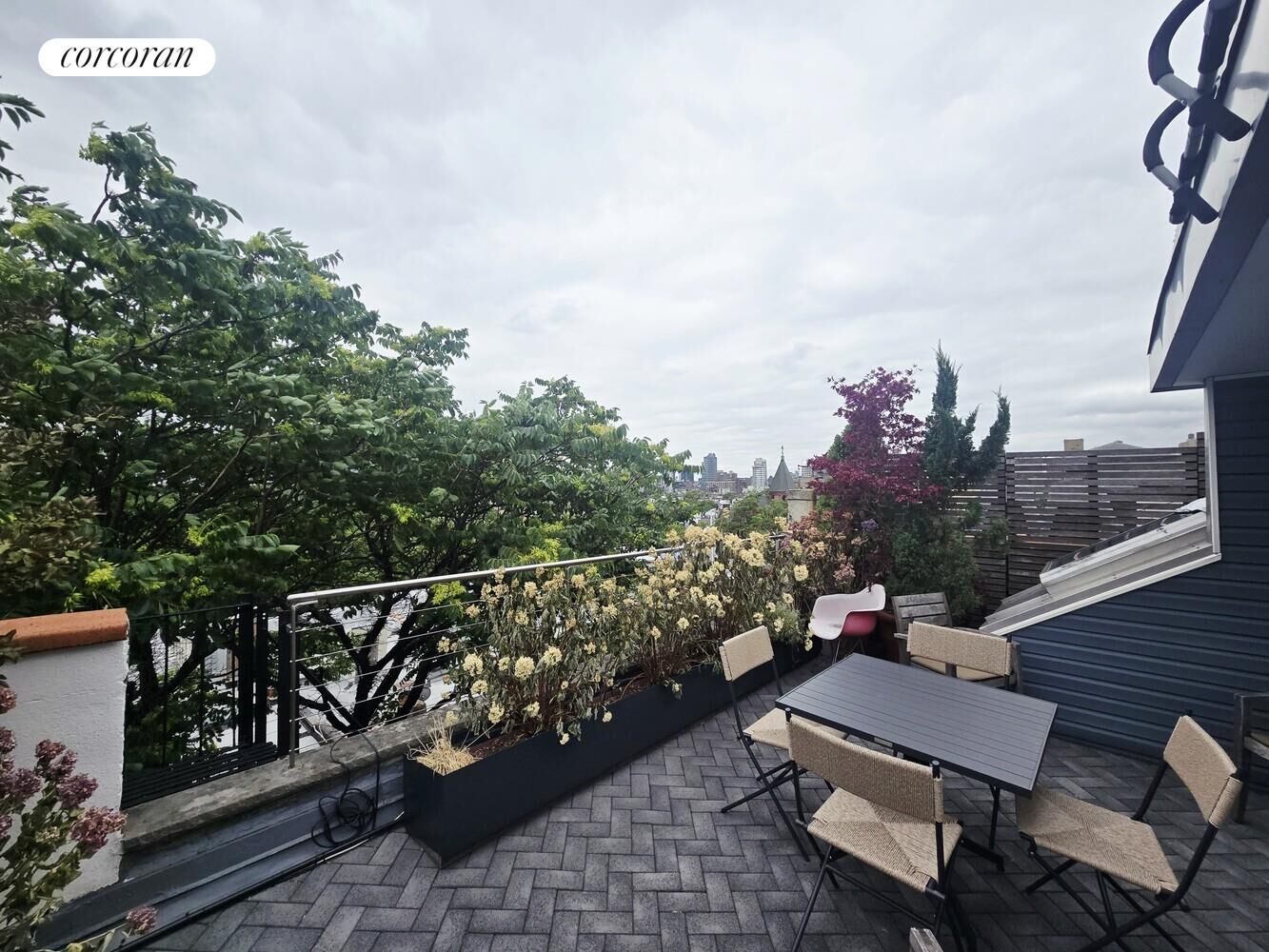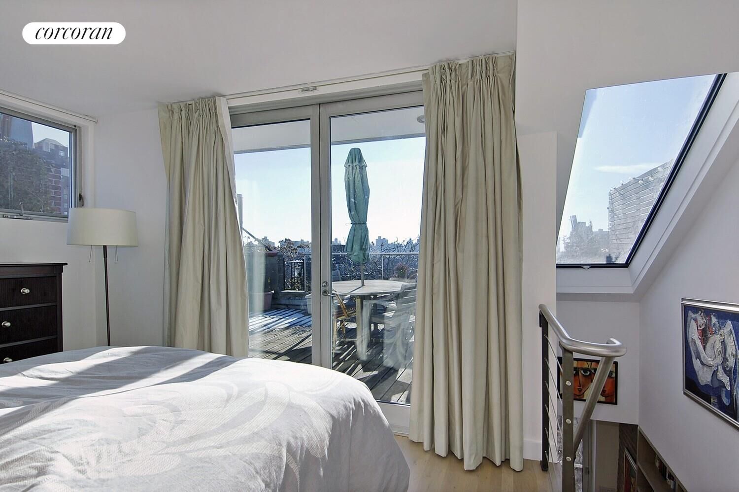 A custom staircase leads to your sunlit bedroom retreat, which opens onto a gorgeous wraparound terrace - your own private rooftop sanctuary complete with open city views, manicured landscaping, and an outdoor shower. Whether you're soaking up the sun or dining under the stars, this outdoor space is unmatched.