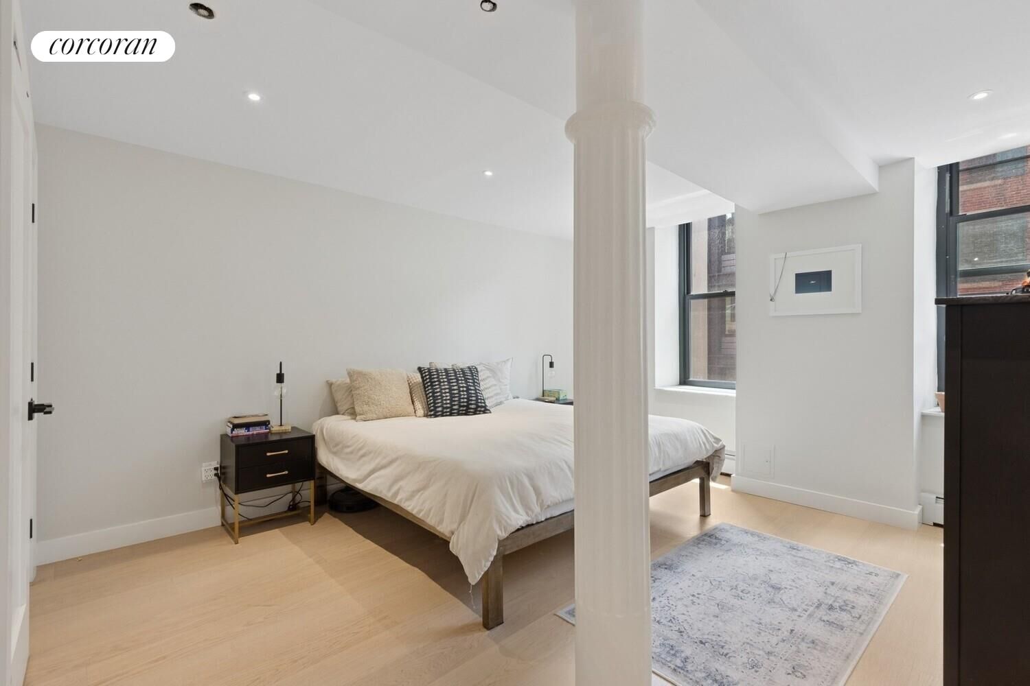 A rare opportunity to rent a newly renovated, 1 bed plus large home office/2 bath, 1317 sq ft condo in a boutique, loft-style building in the historic Seaport District. Located on a beautiful, cobblestone street, the Walton Condominium is filled with character and original detail and so is residence 3A. Upon entering the home you are greeted with a welcoming foyer that leads to an expansive great room with exposed brick, eastern facing light and brand new white oak hardwood floors throughout. A fully renovated, open kitchen is outfitted with gorgeous white custom cabinetry, quartz countertops, subway tile backsplash, stainless steel appliances and a food disposal. The eastern facing, primary bedroom has great light from its two large windows and easily fits a king sized bed and two end tables and has a double door closet. The en suite, primary bathroom features a double sink and enameled, cast-iron bathtub. The oversized home office at over 17 ft in length can serve as a guest room, office, playroom or all of the above with its dual entries and large walk in closet. A second full bathroom features a beautiful glass shower and white tiling. A laundry closet with washer/dryer and adjacent shelving completes this special home.