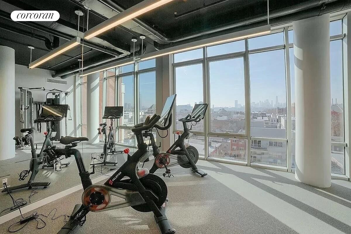 A state-of-the-art penthouse fitness center with Peloton bikes
