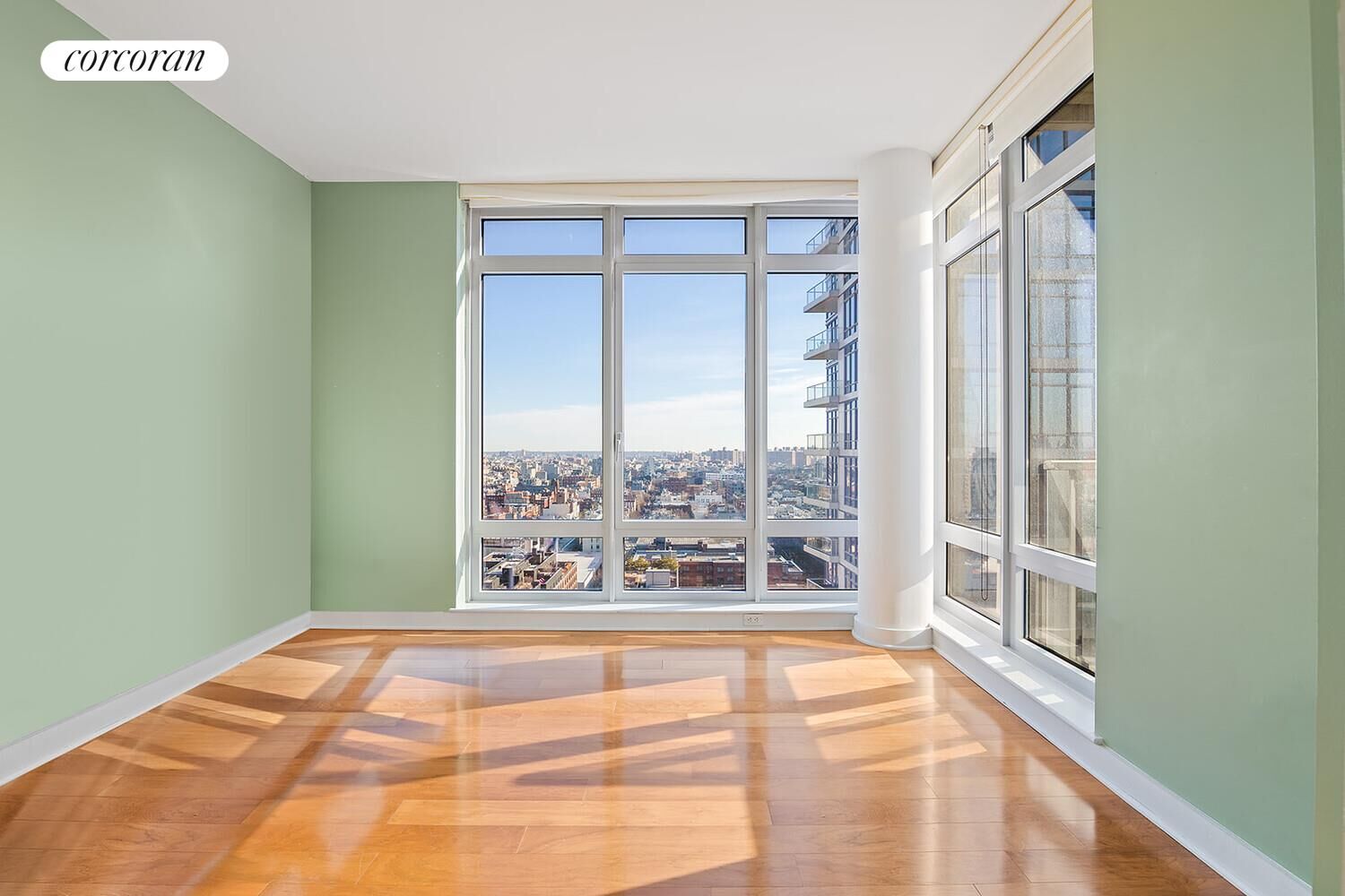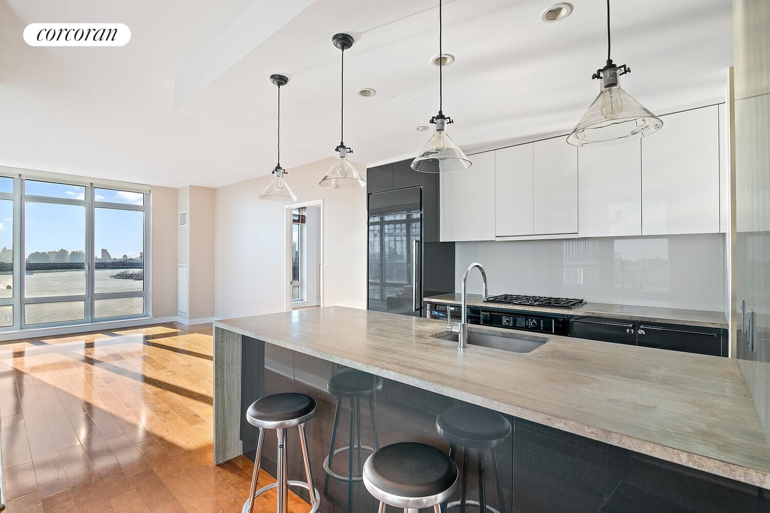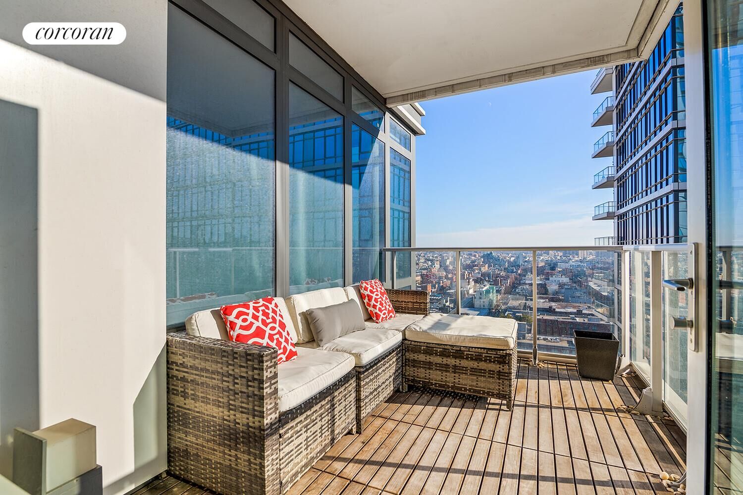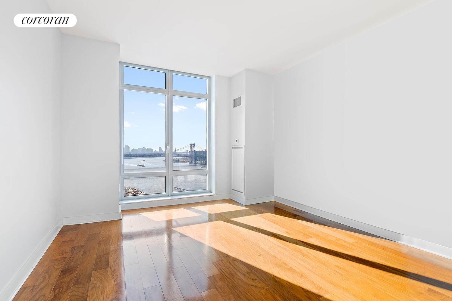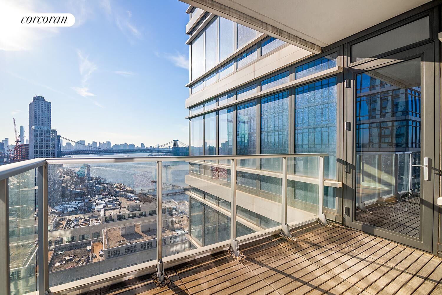 Stunning views of the Williamsburg Bridge and Downtown Manhattan from every room in this high floor, luxury two bedroom/two bathroom condominium rental with a spacious and furnished balcony at 2 Northside Piers! On the southeastern corner of the 22nd floor, this split two bedroom is bathed in southern light and enjoys sunrise over Brooklyn and sunsets over Manhattan every evening!