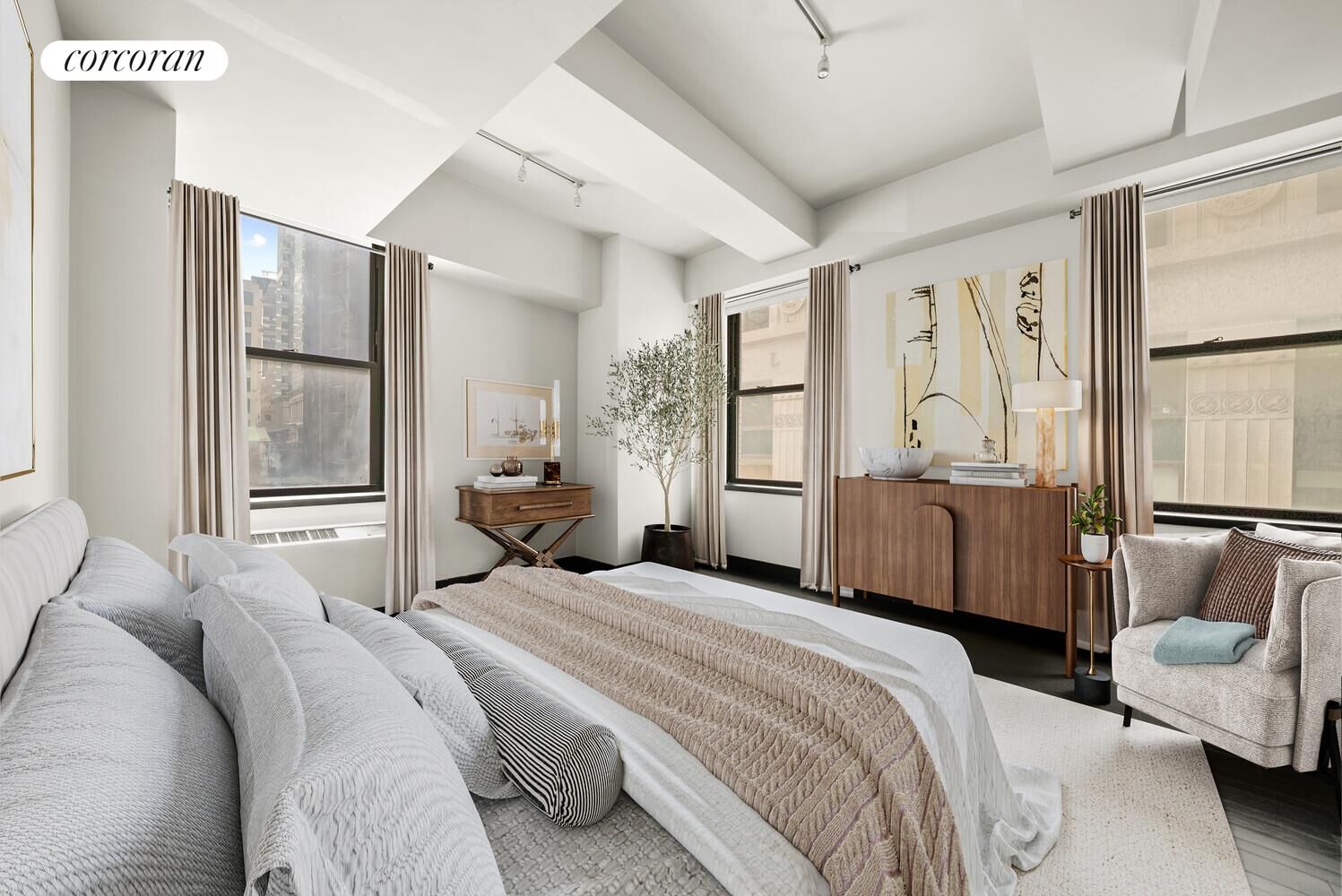 This sprawling 1,100 SF corner one-bedroom, 1.5-bath corner apartment is located in one of Downtown's most exclusive and luxurious buildings - 20 Pine Street.