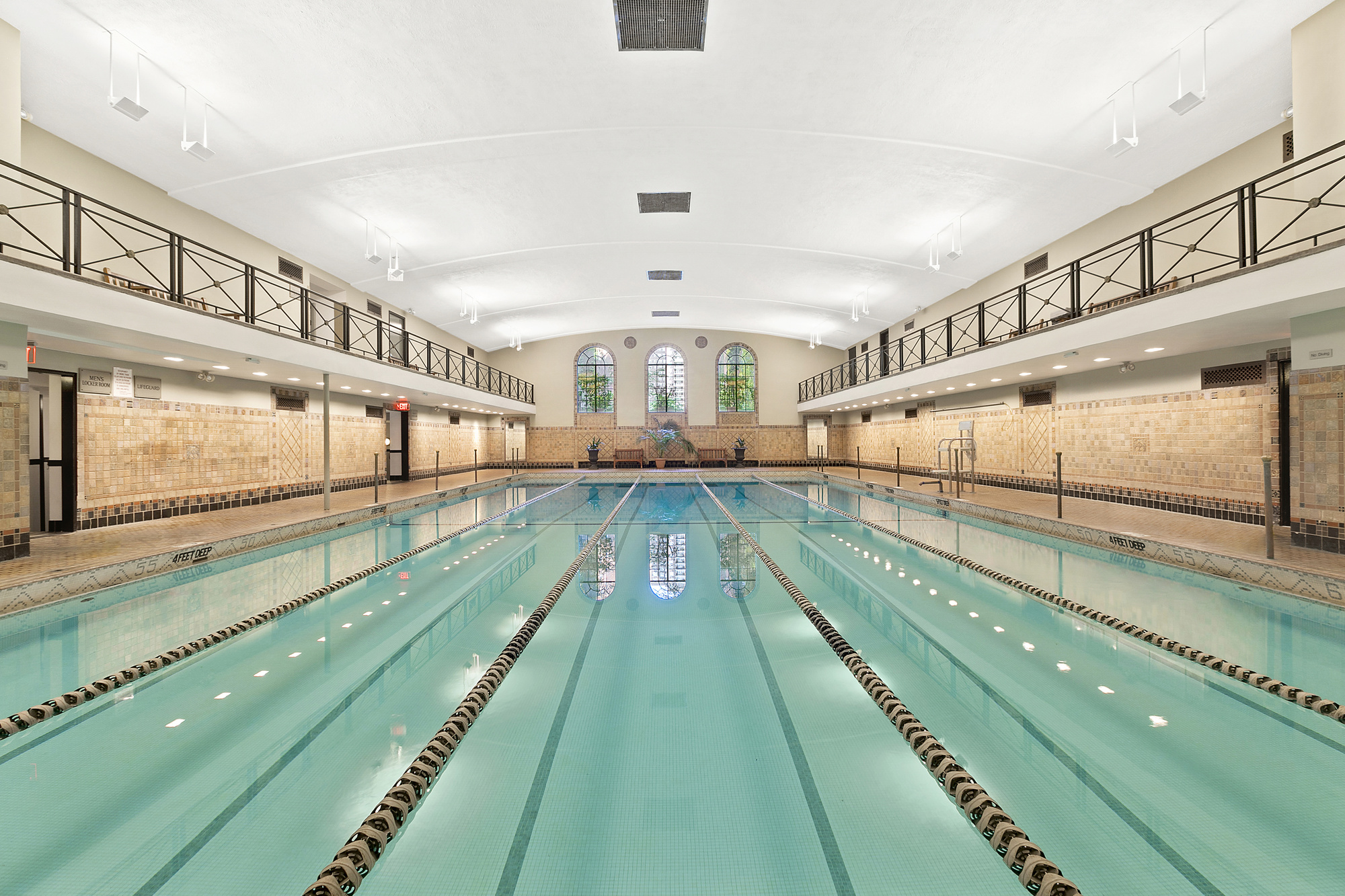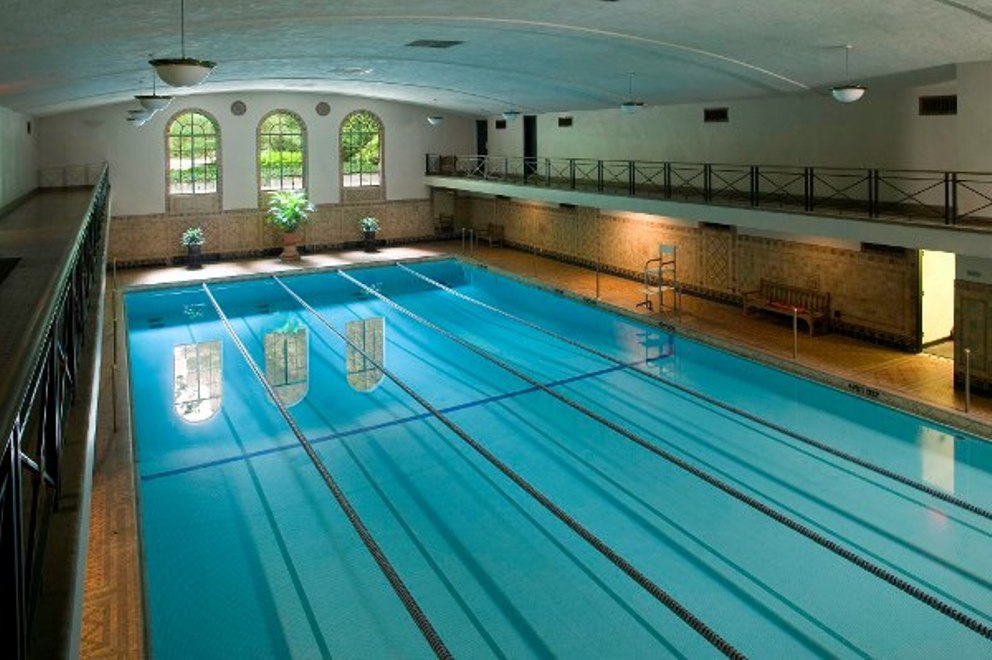 - Half Olympic-size indoor Art Deco swimming pool