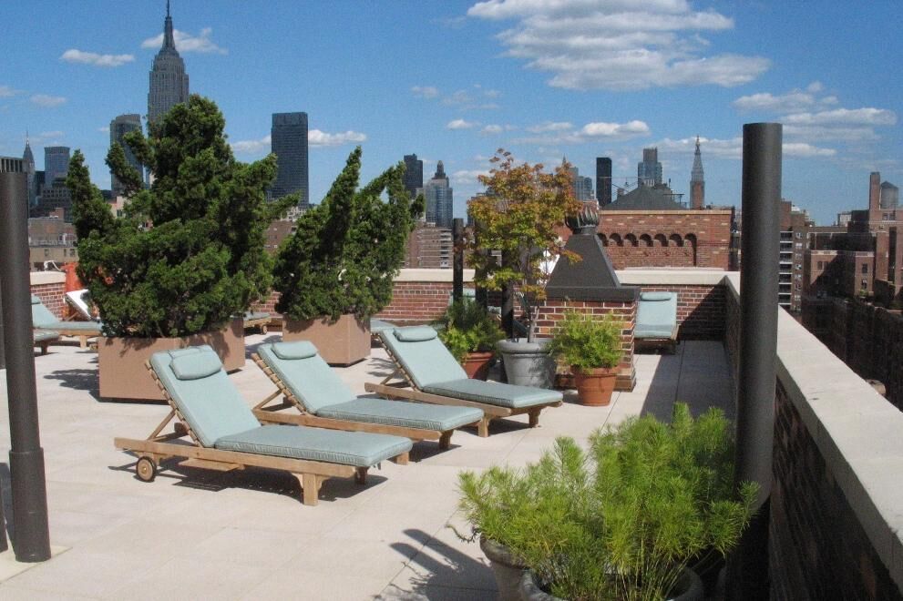 - Landscaped roof deck with Hudson River and skyline views