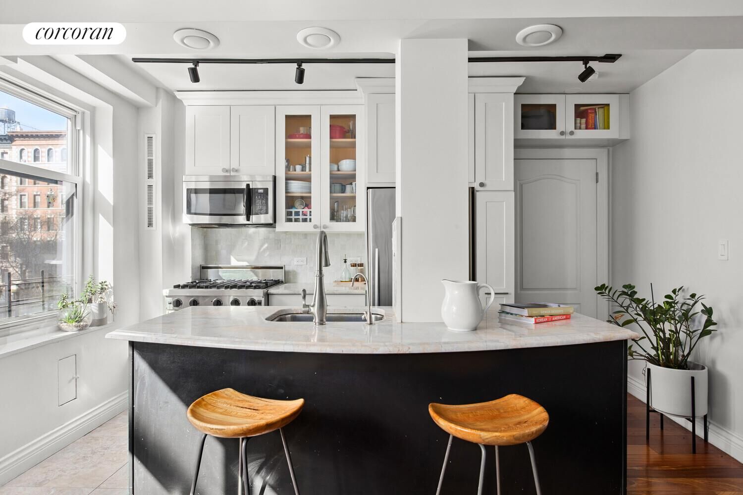 This beautifully renovated 1 bedroom/1 bath + home office/den (5 room apartment) features a spacious, open floor plan flooded with natural light from south-facing windows.
