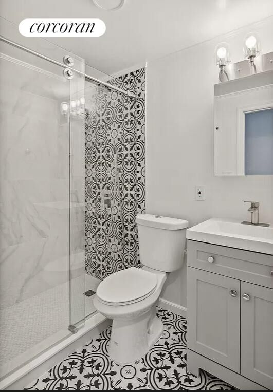 Beautiful Marbled Full Bathroom with a Standing Shower
