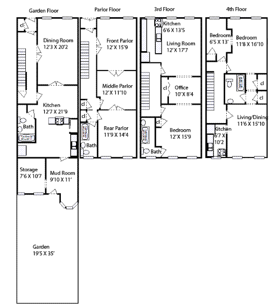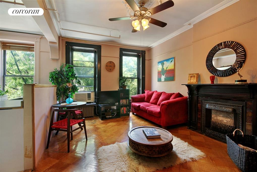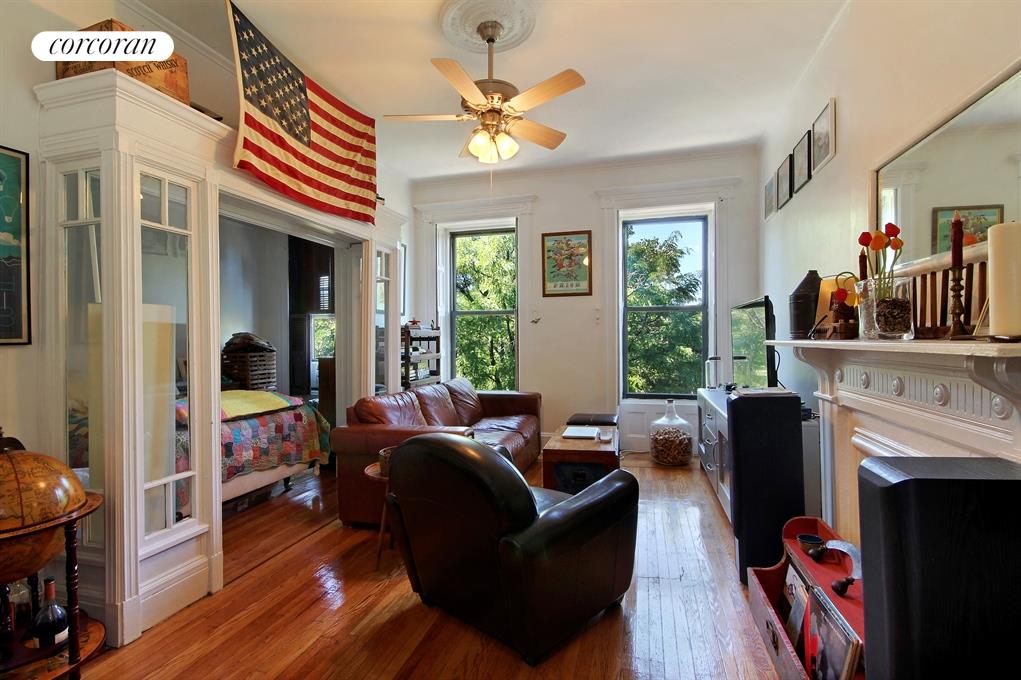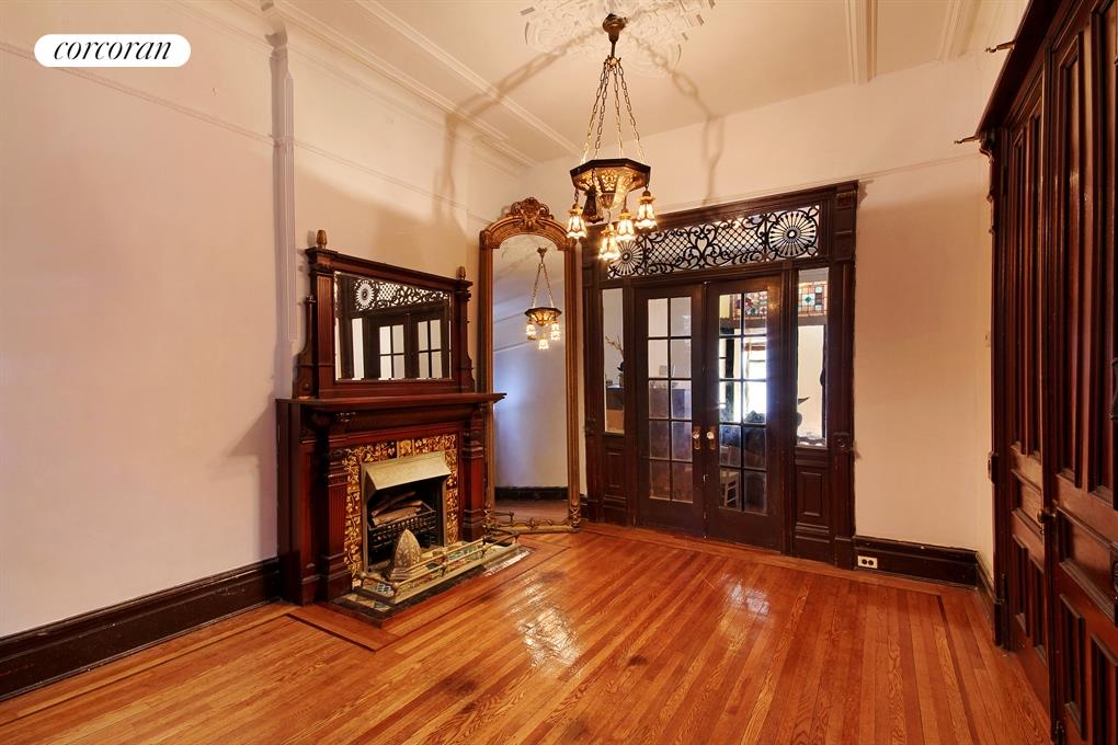 Situated on perhaps one of the best blocks in the neighborhood, sits this four story three family home. Located within the Stuyvesant Heights Historical District, this solid brownstone is configured as a garden and parlor duplex and two 1.5 bedroom rentals. The lovely parlor floor retains most of the original woodwork and architecture dating to the 1880's. Some of the original features include, pocket shutters, wooden mantels, peer mirror, oak floors, stained glass and ornate wooden doors. This lovely home is built 19.5 ft wide and 42 ft deep plus a small extension on the garden level. The garden level has a large eat-in kitchen, bedroom, laundry room, den and a full bathroom. The parlor level has a front, middle and rear room. The top two rental units are generating $1,600 and $1,500 per month. The leases expire December 2013 and July 2014. The units are in good condition each have 1.5 bedrooms with modern kitchens and bathrooms. The block is quiet, leafy and near the Kingston/Throop C train.