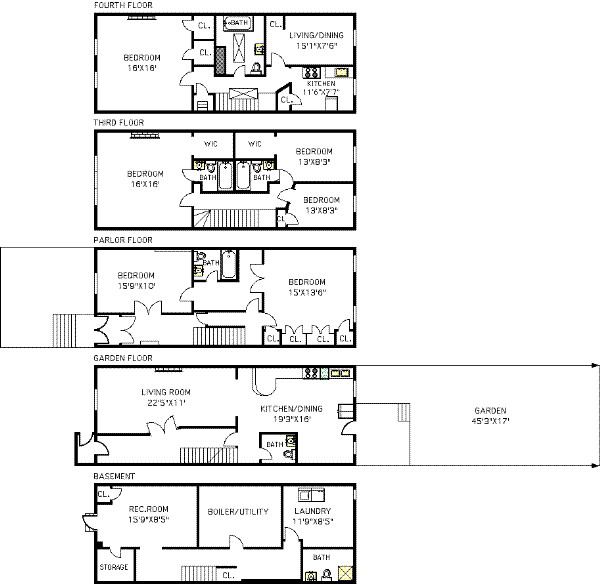 Live in an 1899 Built Bedford-Stuyvesant Brownstone full of detail and character within. This 4-story brick multifamily townhouse is conveniently situated at the borderline of where Bed-Stuy begins and Clinton Hill ends, near shopping, eateries and transportation. 476 Greene Avenue is currently consisted of an owners triplex, gut renovated in 2007, and two full floors above which are ready to be remodeled to your preference. The parlor level, garden floor and finished basement make up owners triplex. The parlor consists of two large bedrooms, a full bath and has 11FT ceilings, plenty of closets, parquet wood floors and original crown moldings. The garden floor with 8FT+ ceiling height consists of the living room w. oak wood flooring and a wood burning fireplace, powder room, and open eat-in kitchen w. tiled flooring and stainless steel appliances which leads out to the 45x17 backyard garden. The basement has full height ceilings, tiled flooring and features a laundry room, rec. room, and bathroom. The 3rd and 4th floors (approx. 750SF each)are a designers dream and needs some TLC. They possess the same charming elements within the rest of the house such as high ceilings (nearly 10FT), parquet wood flooring, original solid wood staircase and doors, crown moldings and stained glass windows. 17x45 house sitting on a 17x100 lot; will be Delivered Vacant.