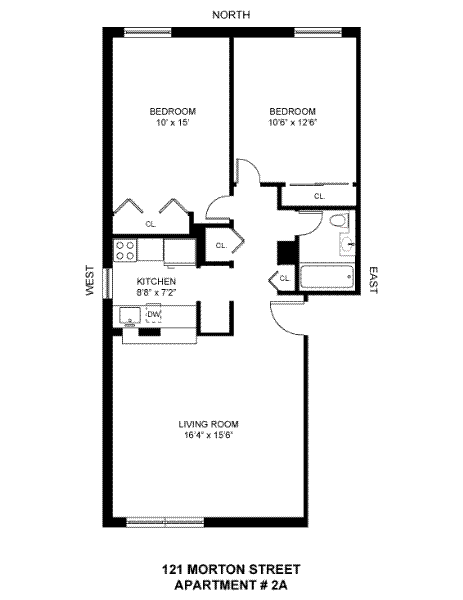 Bright and spacious 2 bedroom 1 bath coop with views South of the Freedom Tower and diagonal view of the Hudson River. It's only two flights up in this well managed well maintained coop with beautiful common garden. This apartment needs renovation!