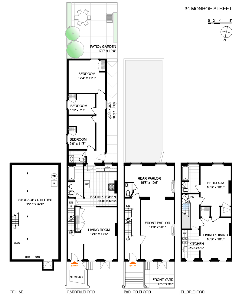 Live in a storybook house on one of the prettiest blocks in Brooklyn! This charming row of Federal Style brick townhouses sits on a quiet side street at the exciting border of Bed-Stuy and Clinton Hill. While it looks small from the outside, the ground floor, built out over 70 offers the smart buyer an opportunity to have a high paying 3-bedroom rental apartment while enjoying the light and tree-line vistas of the upper duplex! It could also make a wonderful single family home and can still be built out an additional 1000 sq. ft. or so, allowing for a home of approx. 3400 sq. ft. when you are done. Already cleaned out by the current owner, bring your architect or contractor and envision a modern home, or return it to a more traditional beauty. Dont pay for someone elses renovation do the renovation of your dreams! This blank canvas is ready for you to call your own, and it is one of the prettiest blocks around! Subways around the corner, great shopping and restaurants in every direction, amenities galore, a quick jaunt to Barclays and downtown Brooklyn, and an easy commute to Manhattan. Enjoy all this neighborhood has to offer before you get priced out!