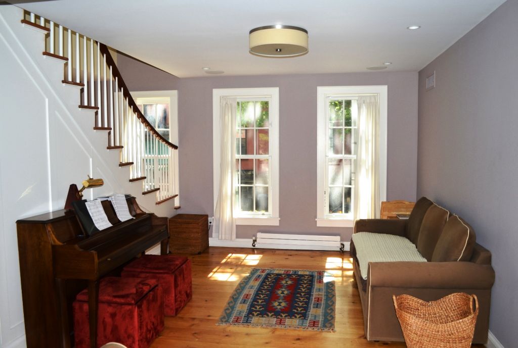 Award-winning, 4-story single-family townhouse in Brooklyn Heights with private driveway. Built in 1816, this authentic clapboard 6-bedroom home is in mint condition, and is the perfect mix of historic charm and contemporary style. The Parlor floor opens with a large foyer leading into the open living room; formal dining room; fully-equipped open chef's kitchen; powder room; and large, light-filled breakfast room/den with French doors leading to a private backyard and south-facing garden. A separate entry leads to the kitchen from the backyard and carriage driveway. Stairs from the foyer lead to the third floor with 3 bedrooms; a large flex office/play space; a full bath and an en-suite bath. The top floor features the Master Bedroom with large walk-in closet and en-suite bath with skylight; 2 additional bedrooms; another full bath and a study. The West wall of the Master Bedroom has French doors leading to a private balcony facing downtown Manhattan and evening sunsets. Finally, the full basement offers a large finished recreation room; washer/dryer; powder room; large closet and storage room; and door leading to private drive and side yard. This exquisitely renovated house is enhanced with white-glove finishes throughout including multiple-zone air conditioning and auto carriage-style garage doors. Bright and airy, the house features windows on the full lengths of 3 exposures, and sits on a quiet tree-lined street off the Promenade. One subway stop from Manhattan, within a few blocks of DUMBO and Brooklyn Bridge Park, and the shops and restaurants on Montague Street.