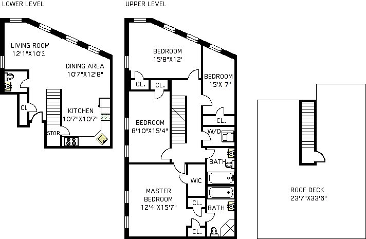 A very special apartment! Located in a recently constructed two unit brick townhouse in charming, quiet and historic Vinegar Hill with it's cobble stone streets and village ambiance; this upper duplex, four bedroom, 2 and 1/2 bath apartment has a spacious kitchen complete with wood cabinets and granite counter tops.Large master bedroom has an en-suite Jacuzzi and stall shower. Central A/C, washer/dryer in apartment. Walk-in closet. Lots of closet space throughout the apartment. Bike storage. All rooms have loads of light streaming through double glazed windows. Charming exclusive landscaped roof deck with panoramic city views accessed through apartment's staircase to the roof. Short walk to DUMBO, Brooklyn Bridge Park, subways and water taxi. Enjoy the best of New York yet have a quiet country style living in the city! One dog and/or cat OK. No shares. Tenant pays for gas heat and electricity. No smoking building.Call Mort Goldstein 917 975-0794